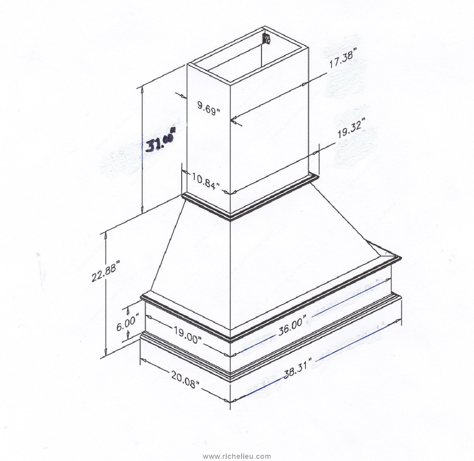 Richelieu 10036150 Signature Series Wooden Hood combines functionality with aesthetic appeal, making it an exceptional addition to any kitchen. Designed to fit perfectly in spaces with widths of 38-3/8 inches, this hood showcases the natural warmth of maple, enhanced by a modern silver metallic power module. The construction features a durable blend of plywood and solid wood, ensuring longevity and reliability in your cooking environment. The hood comes with an unfinished cover, allowing you the flexibility to varnish it in your preferred color, seamlessly integrating with your kitchen's decor. A silver metallic hood liner is included, adding a contemporary touch while efficiently managing ventilation. For those seeking a distinct look, other wood species such as red oak, hickory, cherry, and alder are available by special order. With dimensions of 38 25/64 inches in width, 19 7/8 inches in depth, and 22 7/8 inches in height, this straight-shaped hood is designed for optimal performance in preparation and cooking areas. Whether you’re upgrading an existing kitchen or designing a new one, the Richelieu Signature Series Wooden Hood is a stylish and functional choice that elevates your culinary space.