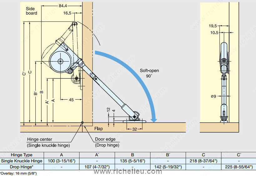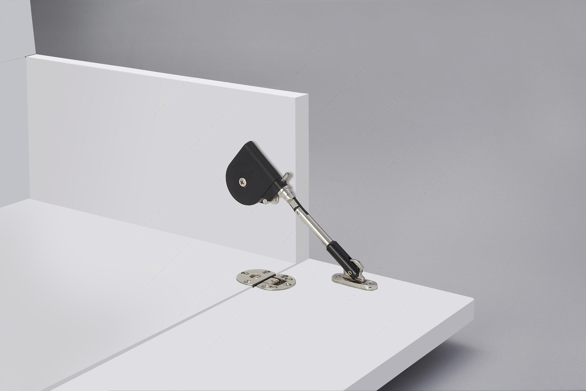 Richelieu 100T90 Lid Stay is expertly designed for downward-opening flap doors, making it an essential component for seamless functionality in cabinetry and furniture applications. This short arm stay is particularly suited for short door installations and can accommodate a variety of hinge types, including piano, butt, or drop hinges, ensuring versatile compatibility for your projects. Crafted from durable zinc and finished in a sleek black, the 100T90 not only offers solid performance but also enhances the aesthetic appeal of your installations. Its non-handed design simplifies the installation process, allowing for easy adaptation to your specific needs without worrying about left or right orientation. Designed for drop-down openings, this lid stay meets rigorous standards and certifications, including ROHS and WEEE, guaranteeing compliance with environmental regulations. Additionally, the product is conveniently ship-able via UPS, making it a practical choice for professionals looking for reliable hardware solutions. Whether you're a building professional or a knowledgeable homeowner, the Richelieu 100T90 Lid Stay is an excellent addition to your toolkit, providing both functionality and style to your downward-opening flap doors. Elevate your projects with this dependable and efficient hardware solution.