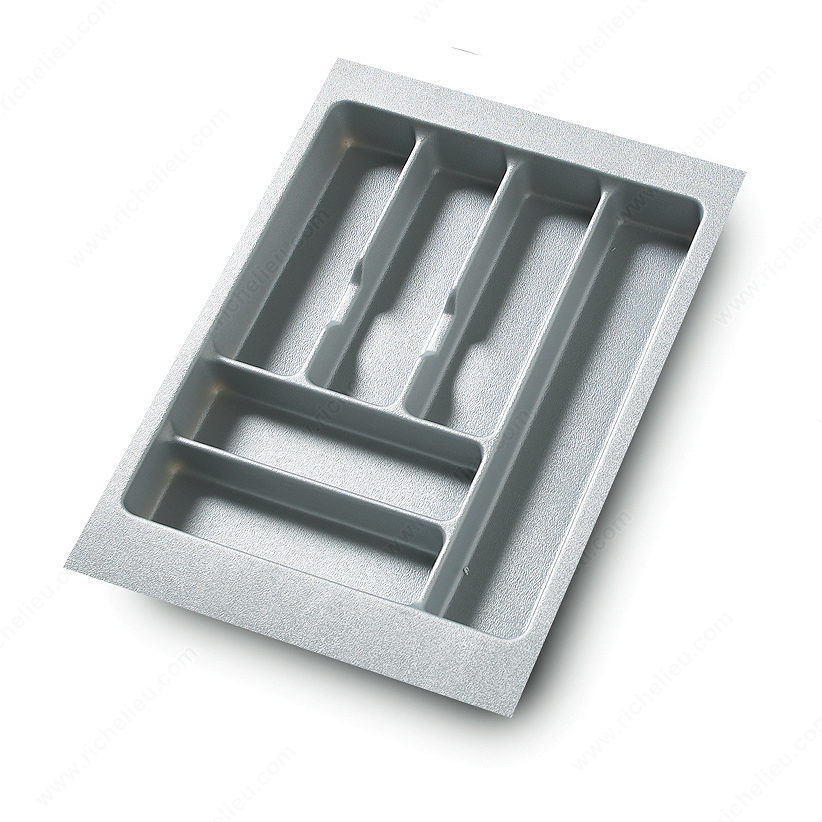 Richelieu 1045100 Richelieu Cutlery Divider offers a practical solution for organizing your kitchen or workspace. Designed to enhance efficiency, this cutlery divider is perfect for storage, cleaning, preparation, and cooking areas. Crafted from durable polystyrene, it boasts a sleek silver gray finish that complements a variety of kitchen styles. Tailored to fit interior dimensions between 13 1/2 to 15 3/4 inches in width, 17 to 21 1/2 inches in depth, and a height of 1 31/932 inches, this divider ensures a snug fit in most drawers. Its versatile design promotes effective drawer organization, allowing you to keep knives, forks, and spoons neatly arranged and easily accessible. Whether you're a professional chef or a home cook, the Richelieu Cutlery Divider enhances the functionality of your culinary space by reducing clutter and improving workflow. Plus, it ships conveniently via UPS, making it easy to incorporate into your kitchen setup. Elevate your storage solutions with the Richelieu 1045100 Cutlery Divider, where practicality meets style, ensuring that your cutlery is always organized and ready for use.