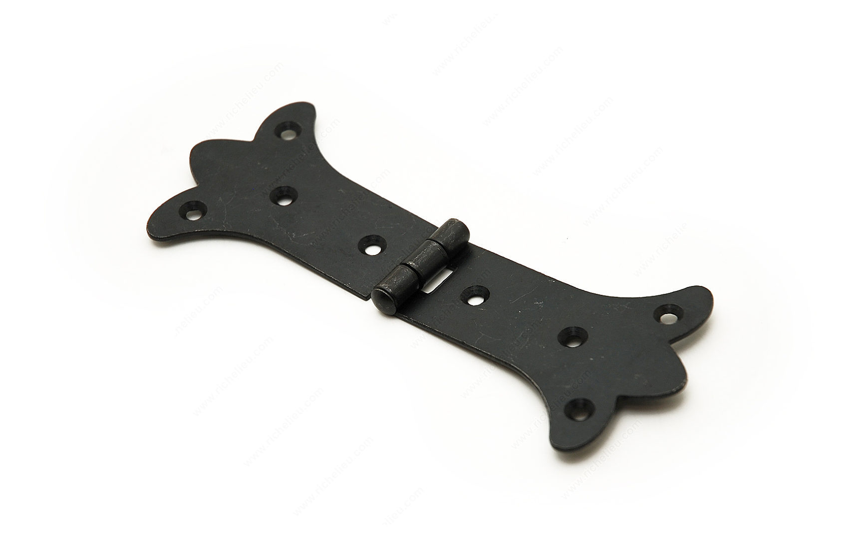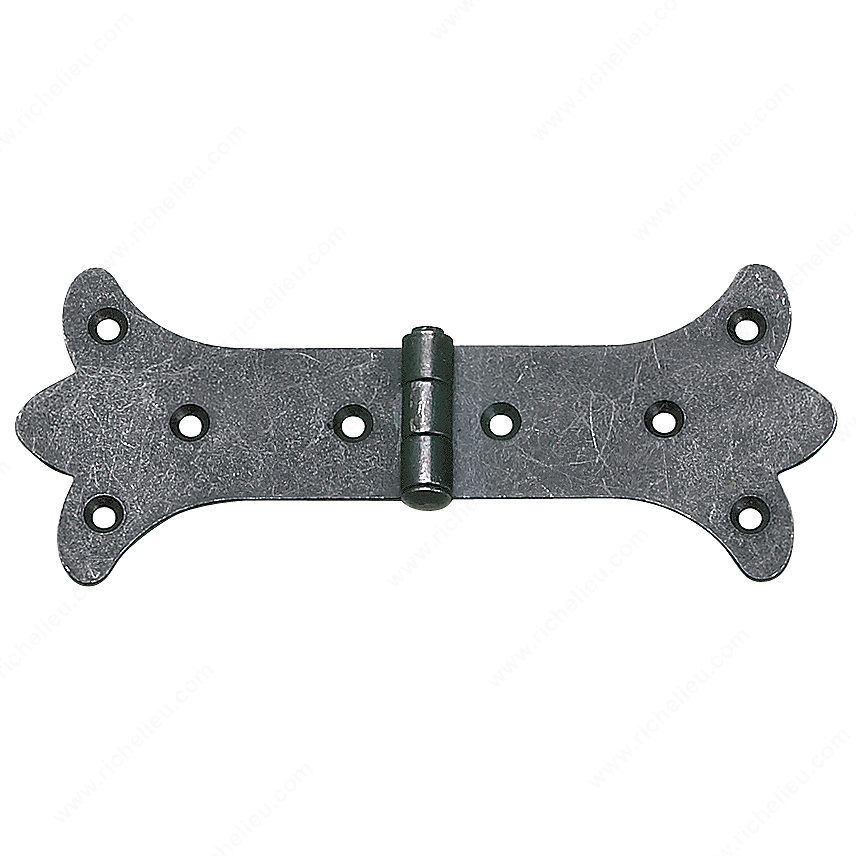 Richelieu 112916900 Traditional Forged Iron Hinge is designed to bring a rustic charm to any door, making it an excellent choice for both residential and commercial settings. Crafted from durable forged iron, this hinge showcases a matte black finish that not only enhances its aesthetic appeal but also ensures long-lasting performance. With overall dimensions of 6 3/8 inches in length and 2 19/32 inches in width, it is well-suited for various door types, seamlessly blending functionality with style. This surface mount hinge is easy to install with wood screws (not included), allowing for a straightforward application process. Its traditional design complements a range of architectural styles, from farmhouse to modern rustic, making it a versatile addition to your hardware collection. Whether you're looking to replace existing hinges or embarking on a new project, the Richelieu Traditional Forged Iron Hinge is a reliable choice that emphasizes quality and craftsmanship. Shipping via UPS ensures that you receive your hardware promptly, ready for installation. Enhance the character of your doors with this striking hinge that marries form and function beautifully.