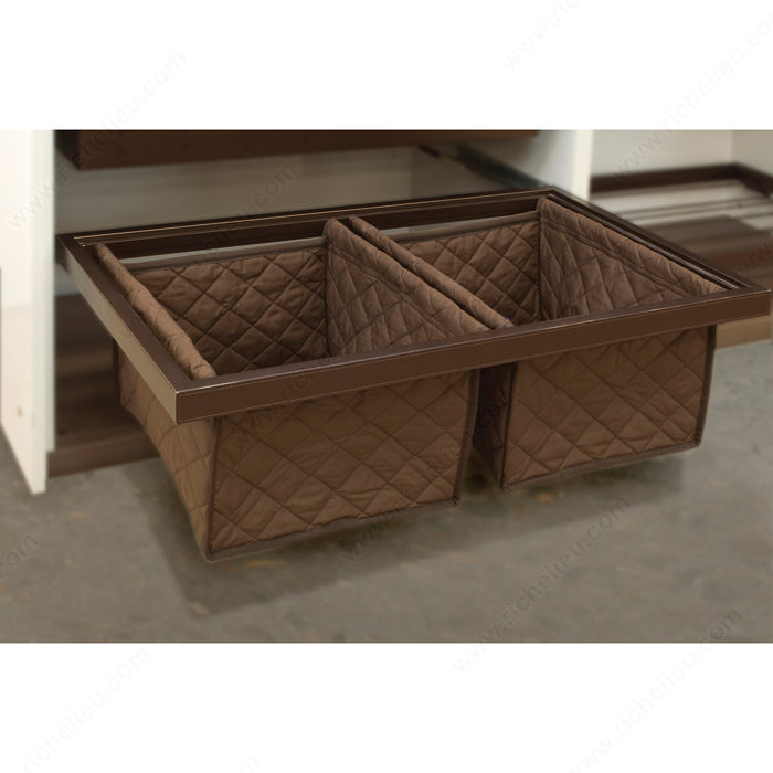 Richelieu 130960135 Fabric Basket Set offers a practical and stylish solution for organizing your space. This set includes two removable and washable fabric baskets, expertly designed to fit within imperial cabinets, making them an ideal choice for maximizing storage efficiency. The rich brown finish adds a touch of elegance to any interior, seamlessly blending with various decor styles. Each basket is designed to accommodate various applications, from storing socks and underwear to keeping gloves, hats, or even dirty laundry neatly tucked away. To achieve optimal use, ensure that your cabinet's interior dimensions meet the required minimum depth of 21 3/4 inches, height of 15 inches, and width of 36 inches. Crafted from durable fabric, these sliding baskets are as functional as they are aesthetically pleasing. Their removable feature allows for easy cleaning and maintenance, ensuring they remain fresh and tidy. With the ability to ship via UPS, you can conveniently add these baskets to your project without delay. Enhance your organizational efforts with the Richelieu 130960135 Fabric Basket Set, designed to bring order and style to your home while meeting the needs of discerning building professionals and knowledgeable homeowners alike.