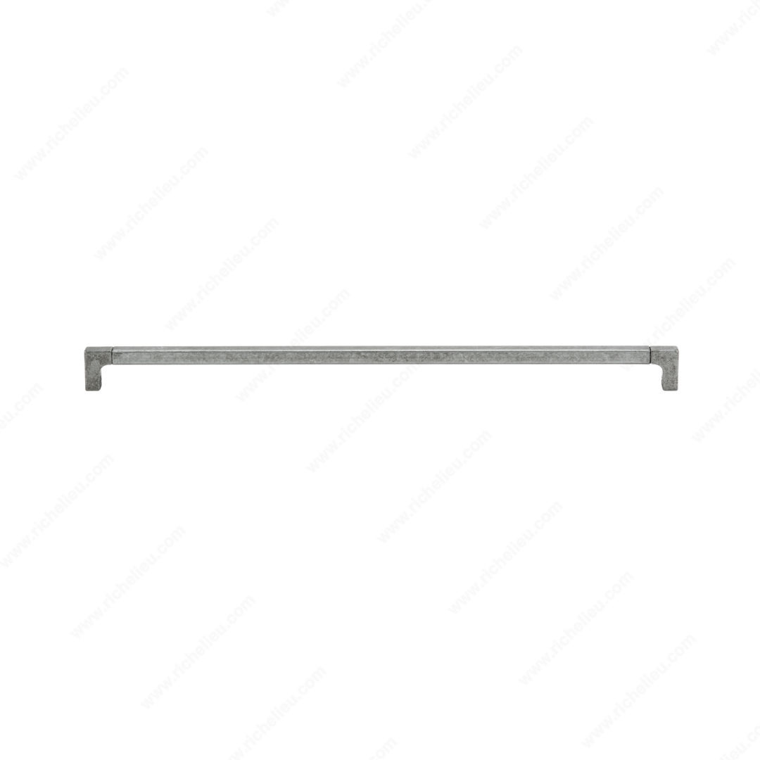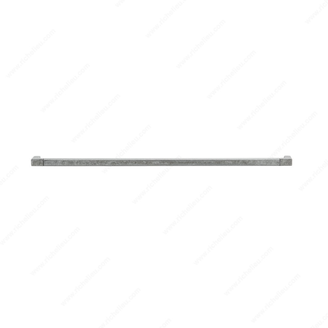 Richelieu 1414512142 Modern Metal Pull - 1414 combines style and functionality with its striking industrial design. This exquisite rectangular pull is crafted from durable steel and features visible assembly joints, adding a unique touch to any cabinetry or furniture. The pewter finish, complemented by gray and chrome accents, enhances its modern aesthetic while ensuring it seamlessly fits into various design schemes. With an overall length of 20 3/4 inches and a center-to-center measurement of 20 1/8 inches, this extra-long pull is perfect for larger drawers, providing both ease of use and a bold statement. The pull's projection of 1 17/32 inches ensures a comfortable grip, making it a practical choice for busy kitchens or workspaces. Included M4 screws make installation a breeze, allowing you to upgrade your space quickly and efficiently. The pull's dimensions, with a width of 9/16 inch, ensure a sleek profile that won’t overpower your cabinetry. Designed as part of the comprehensive 1414 collection, the Richelieu 1414512142 Modern Metal Pull is perfect for building professionals and discerning homeowners alike, looking to elevate their interiors with a contemporary touch.