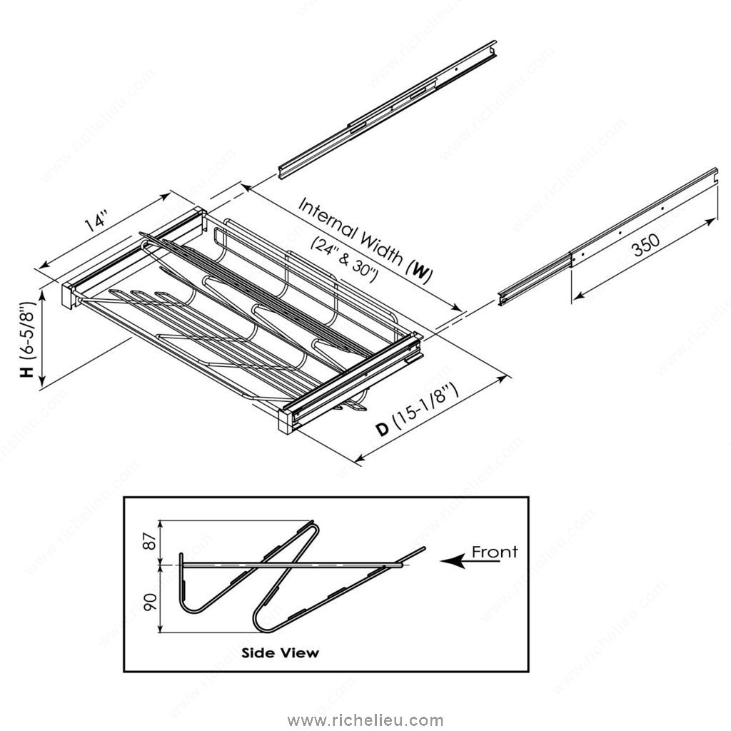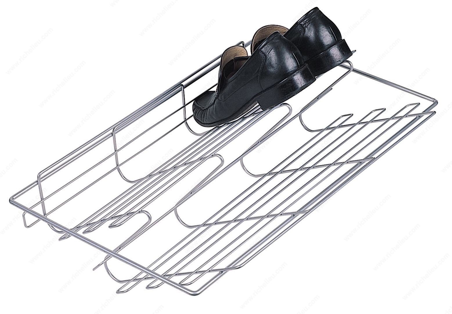 Richelieu 144530106 Shoe Rack is a sleek and functional solution for keeping your footwear organized. This pull-out aluminum shoe rack features two rows, providing ample space for up to six pairs of shoes. Its innovative design allows you to pull the rack towards you, offering an immediate view of your entire shoe collection, making selecting your footwear a breeze. Crafted from durable metal, the shoe rack boasts a stylish silver finish that seamlessly integrates into various interior styles, particularly within the Orlando collection. With dimensions of 30 inches in width, 14 inches in depth, and a height of 6 5/8 inches, it is designed to fit comfortably within your closet or entryway, maximizing your storage potential without sacrificing style. The included slides ensure smooth operation, making it easy to access your shoes whenever needed. Whether you're organizing a small space or enhancing a larger closet, this shoe rack optimizes functionality and aesthetics. Designed for convenience, the Richelieu 144530106 Shoe Rack ships via UPS, ensuring a hassle-free delivery experience. Elevate your shoe storage solution with this practical and elegant addition to your home.