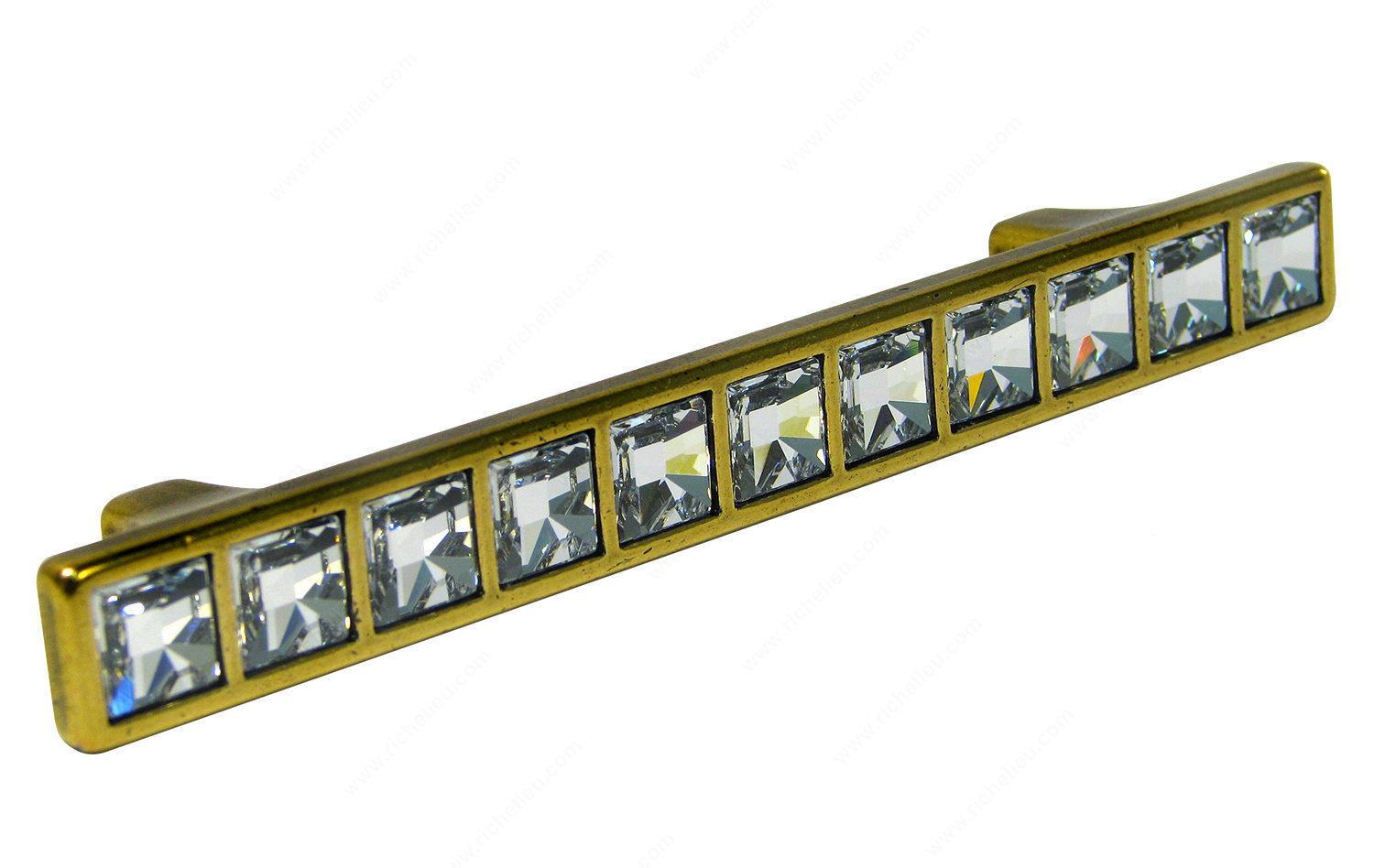 Richelieu 15296BB01 Modern Swarovski Crystal and Metal Pull is a stunning addition to any furniture or cabinetry project, designed to infuse your spaces with a touch of elegance and sparkle. This rectangular pull features a row of embedded Swarovski crystals that catch the light beautifully, enhancing the overall aesthetic of your interiors. With a center-to-center measurement of 3 25/32 inches, this pull is perfect for various cabinetry and furniture applications. The combination of burnished brass and clear crystals not only provides a luxurious look but also offers durability thanks to its quality metal construction. Measuring 5 11/32 inches in length, 13/32 inches in width, and with a projection of 13/16 inches, this pull is both stylish and functional. Part of the esteemed Swarovski Crystal Collection, the pull comes with the necessary M4 screws for easy installation, ensuring that you can quickly enhance your decor without hassle. Its modern design makes it a versatile choice, suitable for both contemporary and classic settings. Elevate your cabinetry and furniture with the Richelieu 15296BB01 pull, where sophistication meets practicality.
