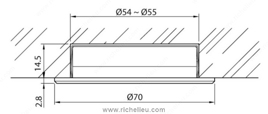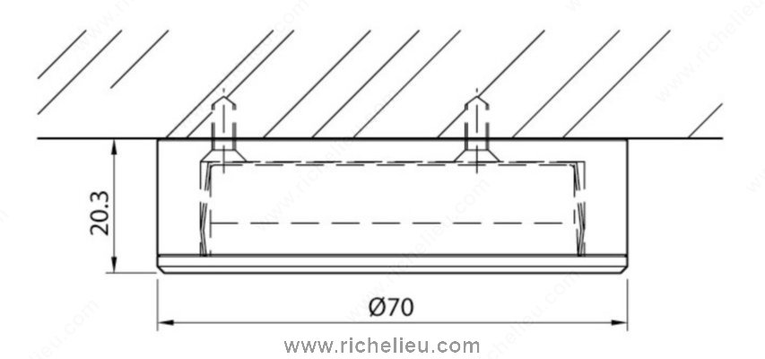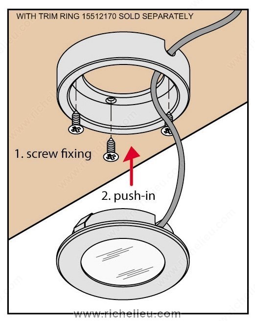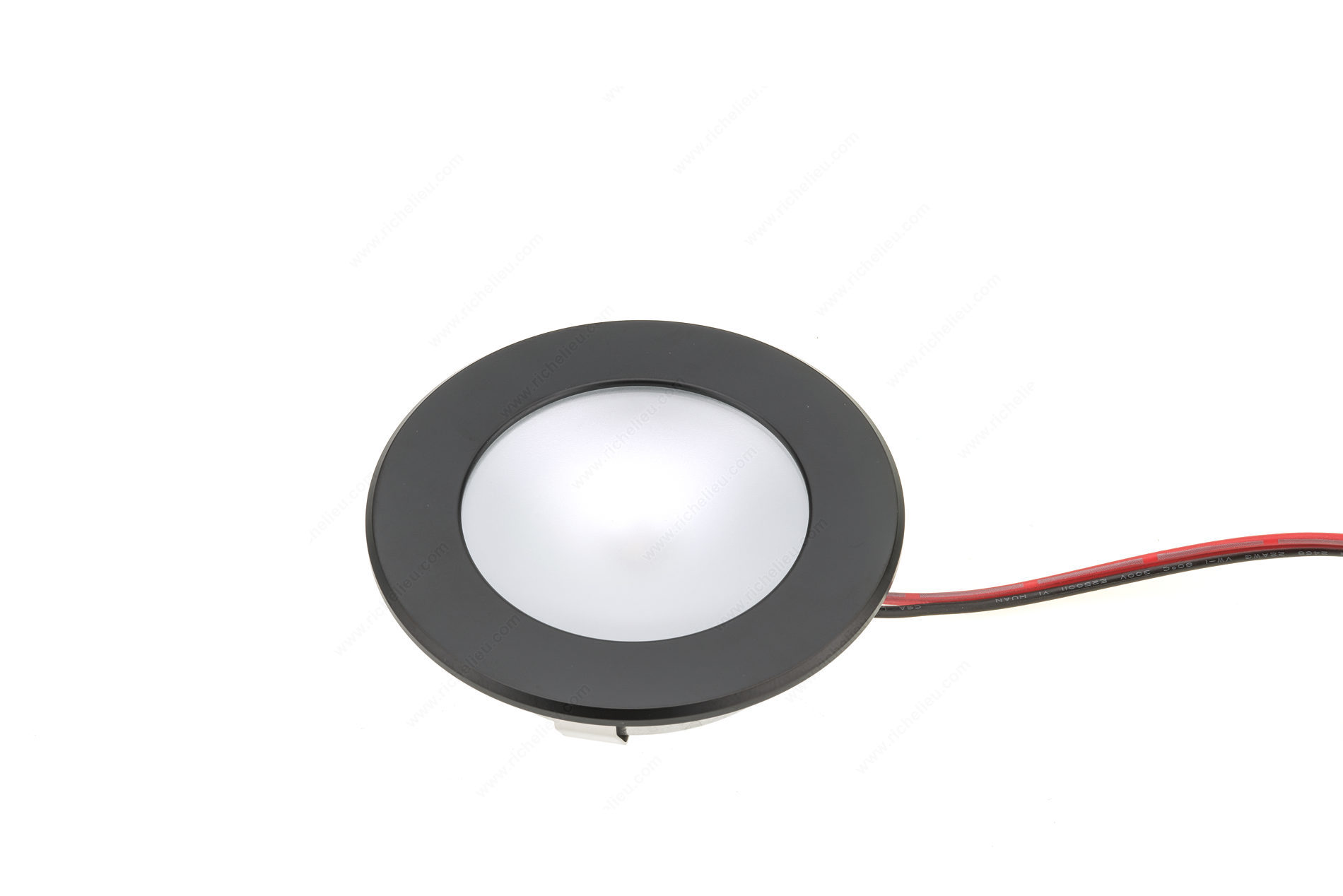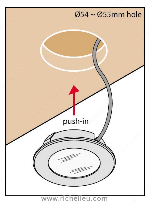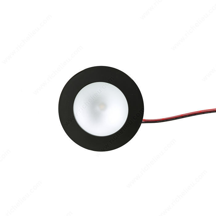 Richelieu 155121090 Richelieu's 3 W LED Series is a cutting-edge lighting solution that combines sleek design with powerful performance. Featuring a high-powered 3 W LED housed in solid aluminum, this round fixture is both durable and stylish. The frosted glass cover paired with a glossy aluminum reflector enhances the light output, making it ideal for various applications, including kitchens, living rooms, and furniture. With a bore hole measurement of 2-1/8" (55mm) and a recessed depth of just 5/8" (15mm), installation is straightforward, allowing for seamless integration into your interiors. This dimmable fixture supports a touch function, giving you control over the ambiance you create. Emitting a cool white light at a color temperature of 6000 K - 6500 K, it delivers a luminous flux of 170 lumens, perfect for accent and task lighting. The Richelieu 3 W LED Series is versatile, suitable for recessed or surface mounting, and has an ETL certification, ensuring compliance with safety standards. Its contemporary style and black finish make it an attractive addition to any space. Elevate your lighting design with this efficient and elegant solution from Richelieu.