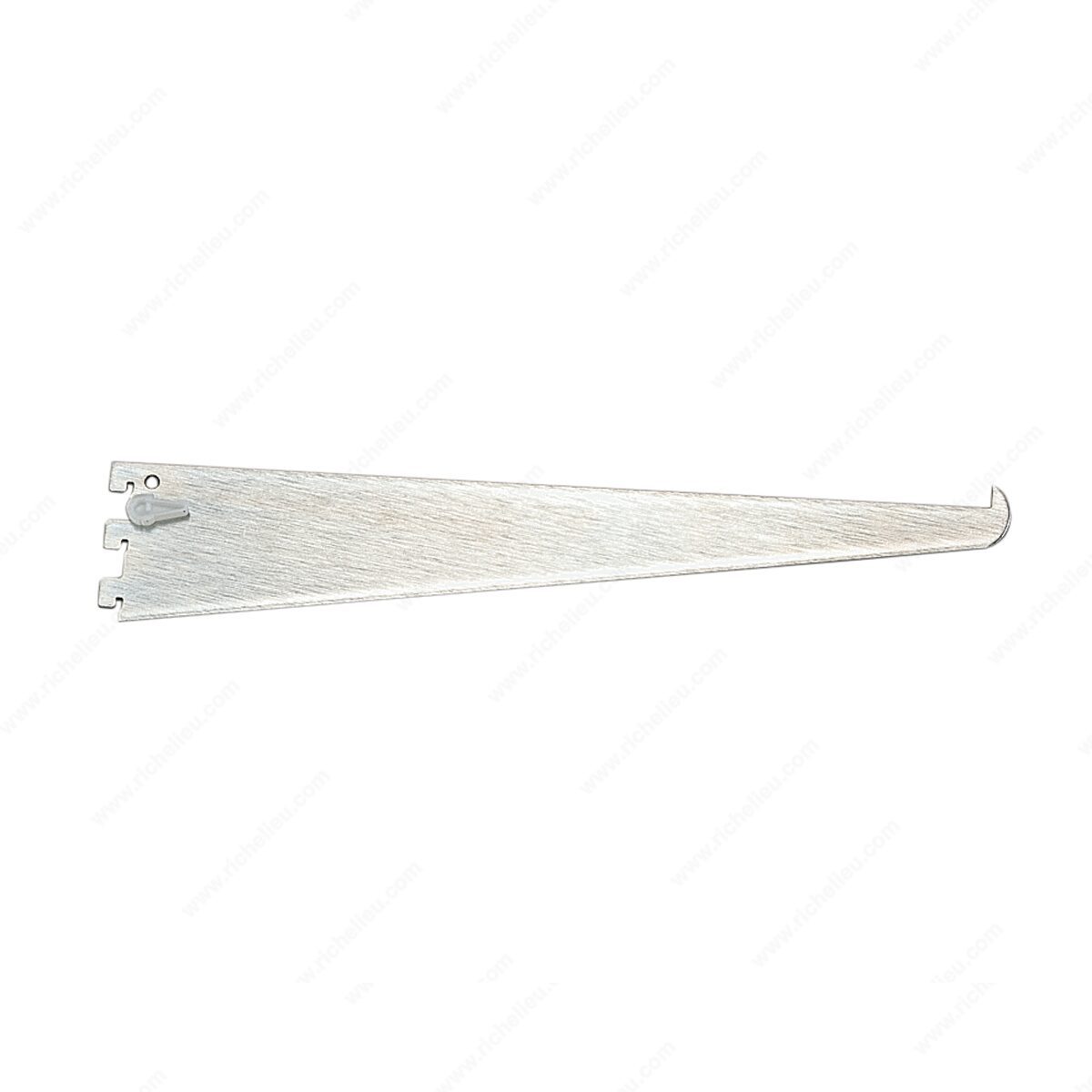 Richelieu 16118143 Heavy-Duty Bracket with Lock Lever 161 is designed for those who require robust support and reliability in their installations. This innovative bracket features a single molded nylon Cam Lock® lever, allowing for quick and secure fastening. This mechanism not only enhances stability but also significantly reduces the risk of disengagement, ensuring that your shelves and fixtures remain firmly in place. Constructed from high-quality steel with an Anochrome finish, this heavy-duty bracket is built to withstand demanding applications and offers excellent durability. With a length of 18 inches and a gauge of 14, it is compatible with oversized #83 standards and double-slot #85 standards, making it versatile for various setups. The simple mounting process further adds to its appeal, allowing for hassle-free installation. Whether you're a building professional or a knowledgeable homeowner, the Richelieu 16118143 Heavy-Duty Bracket provides the strength and stability needed for your projects. It ships conveniently via UPS, ensuring you receive this essential hardware promptly. Elevate your construction and renovation endeavors with this dependable support solution, designed to meet your expectations for quality and performance.