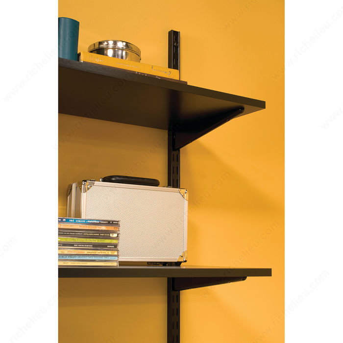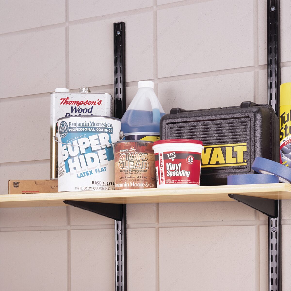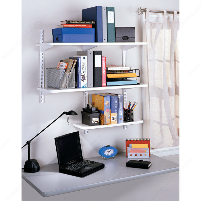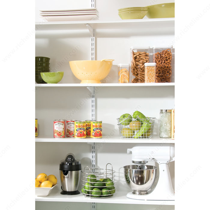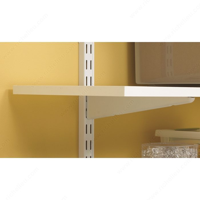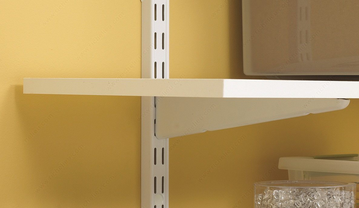 Richelieu 1821430 Heavy-Duty Bracket 182 offers a robust solution for adjustable shelving needs, designed specifically for use with #82 series standards. This versatile bracket is ideal for both residential and commercial environments, providing reliable support in home offices, garages, living rooms, pantries, and storage areas. Its heavy-duty construction makes it particularly suited for high-traffic areas, including schools, hospitals, libraries, and retail stores. Crafted from durable 14-gauge steel, the bracket ensures long-lasting performance, capable of withstanding substantial weight. The clean white finish not only adds a modern touch to any space but also integrates seamlessly with various decor styles. Measuring 14 ½ inches in length, the bracket features double mounting for enhanced stability and a vertical adjustment capability of 1 ¼ inches, allowing for precise positioning of your shelves. Whether you're organizing your home or outfitting a commercial space, the Richelieu Heavy-Duty Bracket 182 provides the strength and versatility required for effective shelving solutions. With its reliable design and ease of installation, this bracket is an essential addition for anyone looking to maximize their storage potential while maintaining aesthetic appeal.