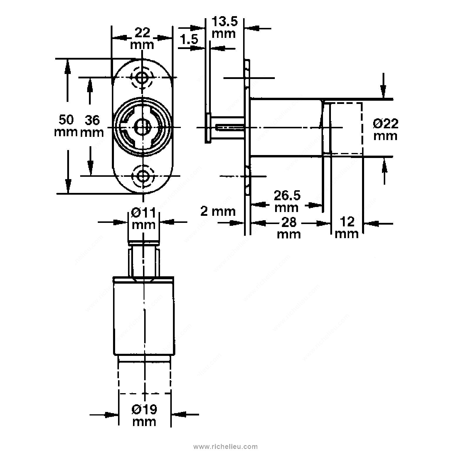 Richelieu 1879201 Push Lock is the ideal solution for securing sliding wood doors with ease and style. Crafted by the renowned Lehmann brand, this push lock features a cylinder diameter of 7/8 inches and a length of 1 3/32 inches, making it perfect for a variety of applications. Designed for use with wood furniture, this lock accommodates panel thicknesses ranging from 13/32 to 7/8 inches, ensuring a snug fit for your sliding doors. The nickel finish not only adds a sleek touch to your hardware but also enhances durability, ensuring that the lock withstands daily wear and tear. Made from robust Zamak material, this push lock promises reliability and strength. The 90° key turn degree allows for a simple and efficient locking mechanism, providing peace of mind for your spaces. Positioned for right-hand use, the Richelieu 1879201 Push Lock is an essential addition to any wood sliding door project. With the convenience of shipping via UPS, integrating this reliable locking solution into your design is straightforward. Elevate your wood door functionality while maintaining aesthetic appeal with this expertly crafted push lock from Richelieu.