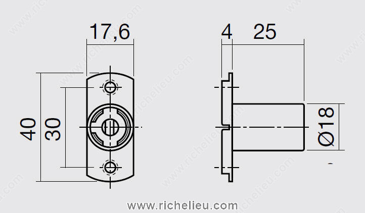 Richelieu 1892701 Side Lock for Locking System offers a reliable solution for securing multiple drawers simultaneously. Designed to integrate seamlessly with a metal bar featuring a series of studs, this lock enhances your central locking system, making it easier to manage access to your furniture. With a maximum bar length of 600 mm (23-5/8"), it is ideal for various applications, particularly in wooden furniture where security and functionality are essential. This lock is made from durable Zamak material and finished in a sleek nickel, ensuring both longevity and aesthetic appeal. It features a cylinder diameter of 23/32 inches and a length of 31/32 inches, providing a solid locking mechanism. The key turn degree of 180° allows for straightforward operation, while the vertical positioning accommodates a range of installations. The lock is compatible with panel thicknesses ranging from 13/32 to 1 3/32 inches, making it versatile enough for various wood types. Please note that the lock, cylinder, bar, and metal studs are sold separately, allowing you to customize your locking system according to your specific needs. For convenient shipping, this product can be dispatched via UPS. Enhance the security and functionality of your furniture with the Richelieu 1892701 Side Lock.