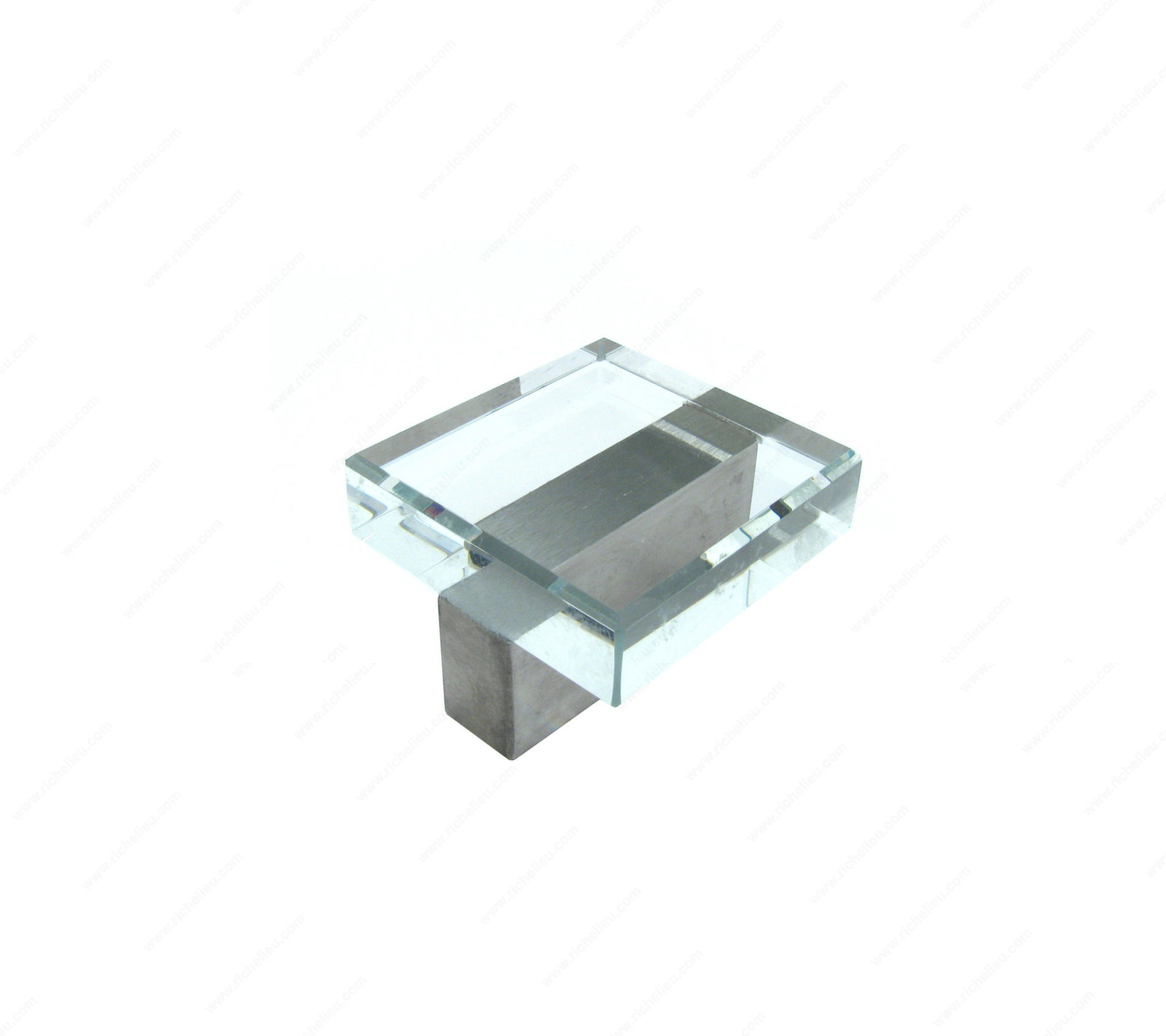 Richelieu 20271619511 Modern Glass and Metal Knob - 2024 brings a sophisticated touch to your cabinetry and furniture with its elegant design. This square glass knob features a sleek rectangular metal base, making it a perfect minimalist accent for modern interiors. Part of the Glass City Collection, it showcases a stunning combination of clear and gray chrome finishes, enhanced by a brushed nickel touch. Measuring 1 3/8 inches in length and width, with a projection of 31/32 inches, this knob fits seamlessly into various design schemes. The 5/8 inch center-to-center measurement ensures compatibility with standard cabinetry, while its load capacity of 2.2 pounds promises functionality without sacrificing style. Crafted from durable crystal, glass, and zamak, this knob not only elevates aesthetics but also provides lasting performance. Installation is straightforward, as the M4 screws are included, allowing you to effortlessly update your space. Whether you are a building professional or a discerning homeowner, the Richelieu 20271619511 Modern Glass and Metal Knob is an excellent choice for enhancing the visual appeal and functionality of your furniture and cabinetry.