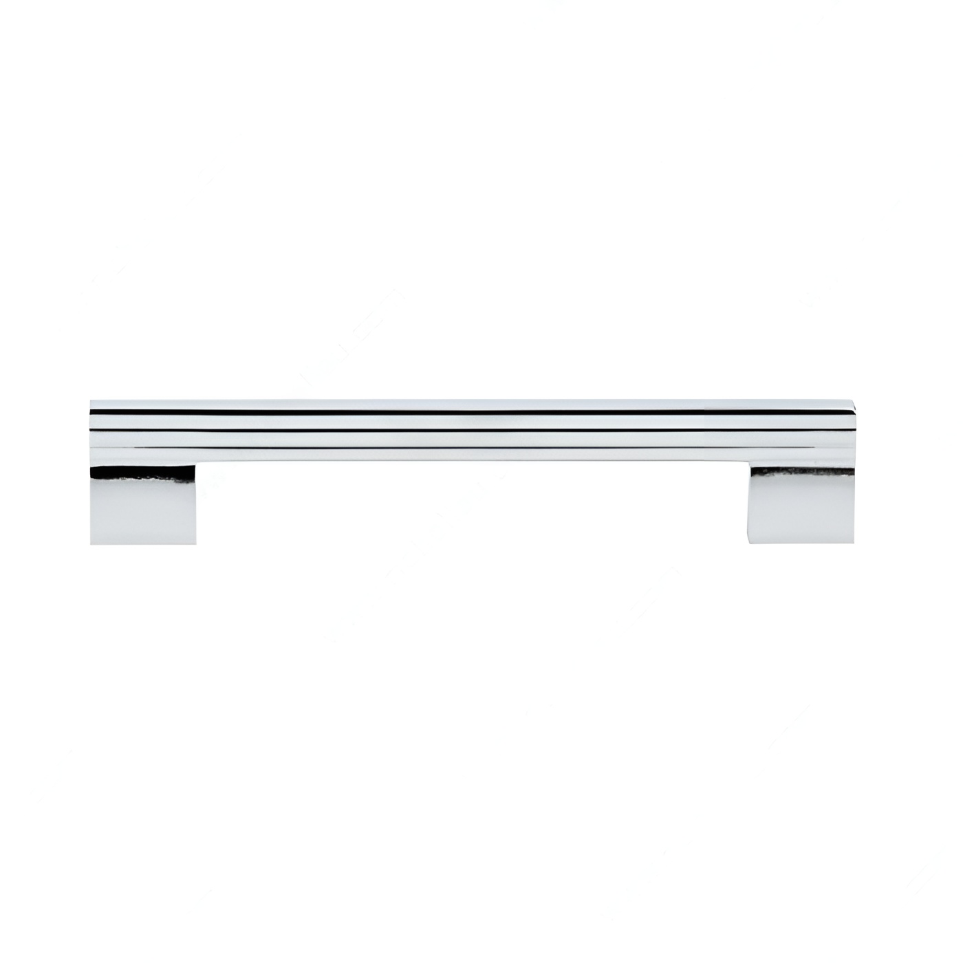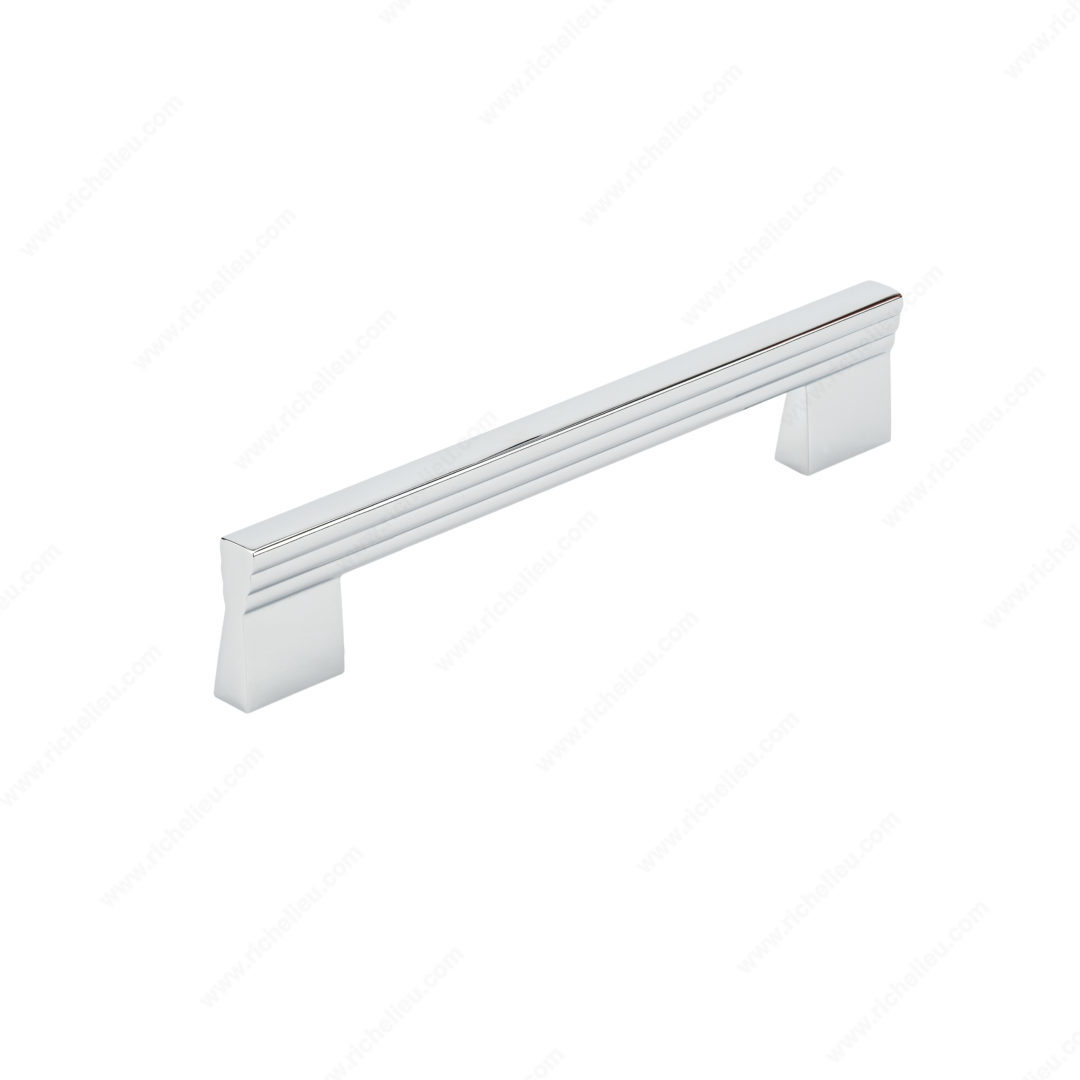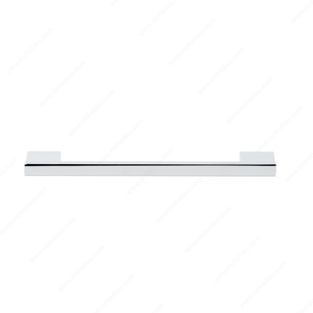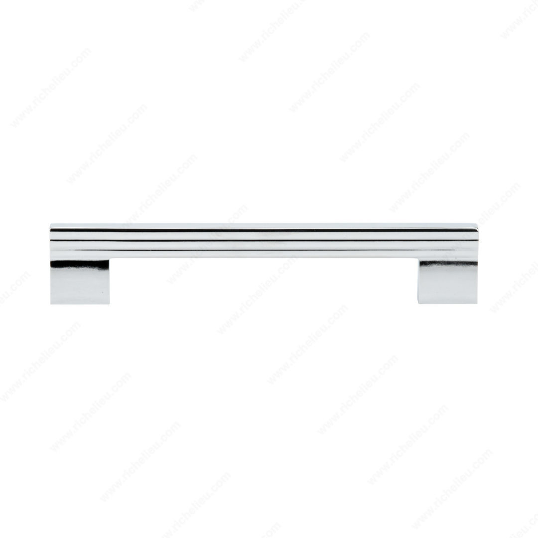 Richelieu 21690160140 Modern Metal Pull - 21690 features a sleek and contemporary design that enhances any cabinetry or furniture piece. The pull showcases a streamlined surface that is elegantly contrasted by ridged sides, offering a sophisticated interplay of textures. Ideal for modern interiors, its minimalist aesthetic complements a variety of styles while ensuring functionality. With a center-to-center measurement of 6 5/16 inches, this pull is perfectly designed for easy installation, and the included M4 screws simplify the setup process. The overall dimensions measure 7 9/32 inches in length, 13/32 inches in width, and a projection of 1 3/8 inches, making it comfortable to grip while maintaining a low-profile appearance. Constructed from durable metal, the pull boasts a beautiful chrome finish that not only adds a touch of elegance but also ensures longevity and resistance to wear. Available in a striking gray and chrome color combination, the Richelieu 21690160140 is a versatile choice for kitchens, bathroom cabinets, or furniture projects. This product ships conveniently via UPS, making it an easily accessible addition to your home improvement essentials. Elevate your space with this stylish and functional hardware solution.