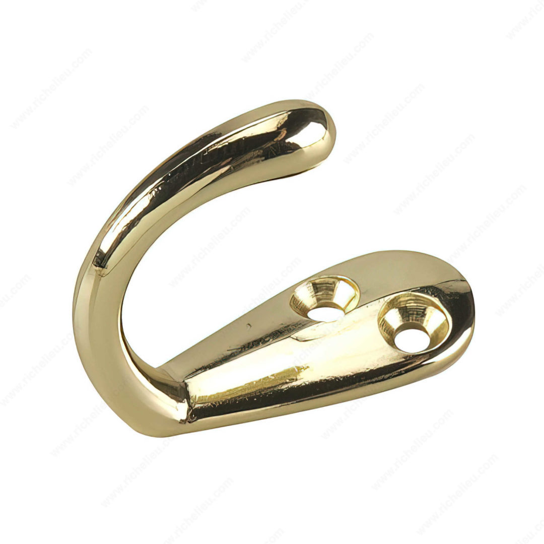 Richelieu 223BR 1-3/4 in Single Wardrobe Hook - 223 offers a perfect blend of style and functionality for any space. Crafted from durable metal, this utility hook features a bright brass finish that not only enhances its visual appeal but also complements various décor styles. Measuring 1 13/16 inches in height and 23/32 inches in width, this compact design is ideal for use in bedrooms, bathrooms, entryways, mudrooms, and closets. With a robust load capacity of 11 pounds, the 223BR ensures that your belongings are securely hung, bringing order to your home. The hook's 5/16-inch center-to-center spacing allows for easy installation on walls or doors, making it a versatile choice for any room. Each blister pack contains two units, providing excellent value and convenience. Included screws make installation a breeze, so you can quickly enhance your storage solutions without the hassle of searching for additional hardware. Whether you're organizing coats, towels, or bags, the Richelieu 223BR Single Wardrobe Hook is an essential addition to your home, combining practicality with an elegant touch.