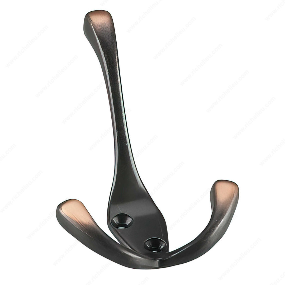 Richelieu 236ORBV 4 Inch Heavy Duty Triple Coat Hook combines functionality with a stylish design, making it an excellent addition to any space. Crafted from durable metal with an elegant oil-rubbed bronze finish, this coat hook not only enhances your décor but also provides practical storage solutions. The unique three-arm design maximizes your storage potential, allowing you to organize accessories efficiently in a variety of settings. Measuring 3 27/32 inches in height, 2 25/32 inches in width, and projecting 2 1/4 inches, this compact hook fits seamlessly onto walls or doors, making it perfect for bedrooms, bathrooms, entryways, mudrooms, and closets. With a robust load capacity of 22 pounds, it can hold multiple items securely, ensuring your belongings are organized and easily accessible. Installation is straightforward, as screws are included, allowing you to set it up in no time. Whether you're looking to declutter your space or simply add a touch of elegance, the Richelieu 236ORBV Heavy Duty Triple Coat Hook is the ideal choice for those who appreciate both aesthetics and utility. Upgrade your storage solutions today with this versatile and stylish hook.