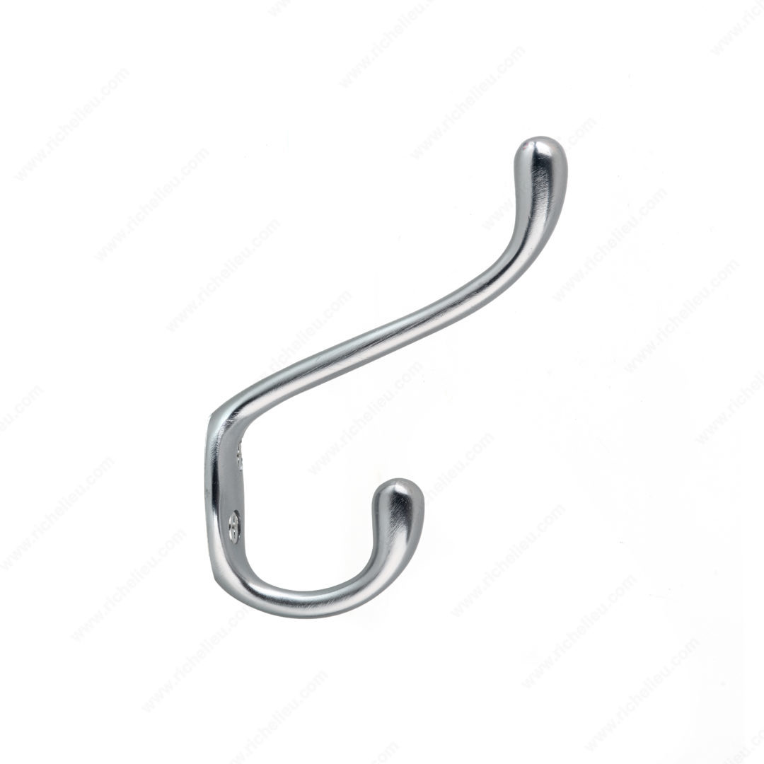 Richelieu 237BCV Heavy-Duty Coat Hook offers a blend of style and functionality, making it an ideal choice for any space. With its sleek brushed chrome finish, this double arm design enhances your décor while providing ample storage for coats and hats. Measuring 5 15/32 inches in height and 3 17/32 inches in projection, this utility hook is perfect for bedrooms, bathrooms, entryways, and mudrooms. Designed to accommodate a load capacity of up to 22 pounds, the Richelieu coat hook is robust enough to handle your everyday needs. The 21/32-inch center-to-center spacing ensures an easy installation, whether on walls or doors. Each hook comes packaged in a convenient bag and includes #7 screws for hassle-free mounting. The combination of gray and chrome colors allows this accessory to seamlessly integrate into various design styles, ensuring that your space remains stylish and organized. With dimensions of 31/32 inches in width, the Richelieu 237BCV Heavy-Duty Coat Hook is a compact yet powerful solution for keeping your areas tidy. Elevate your storage solutions with this essential, practical accessory that tackles life's little challenges with ease.