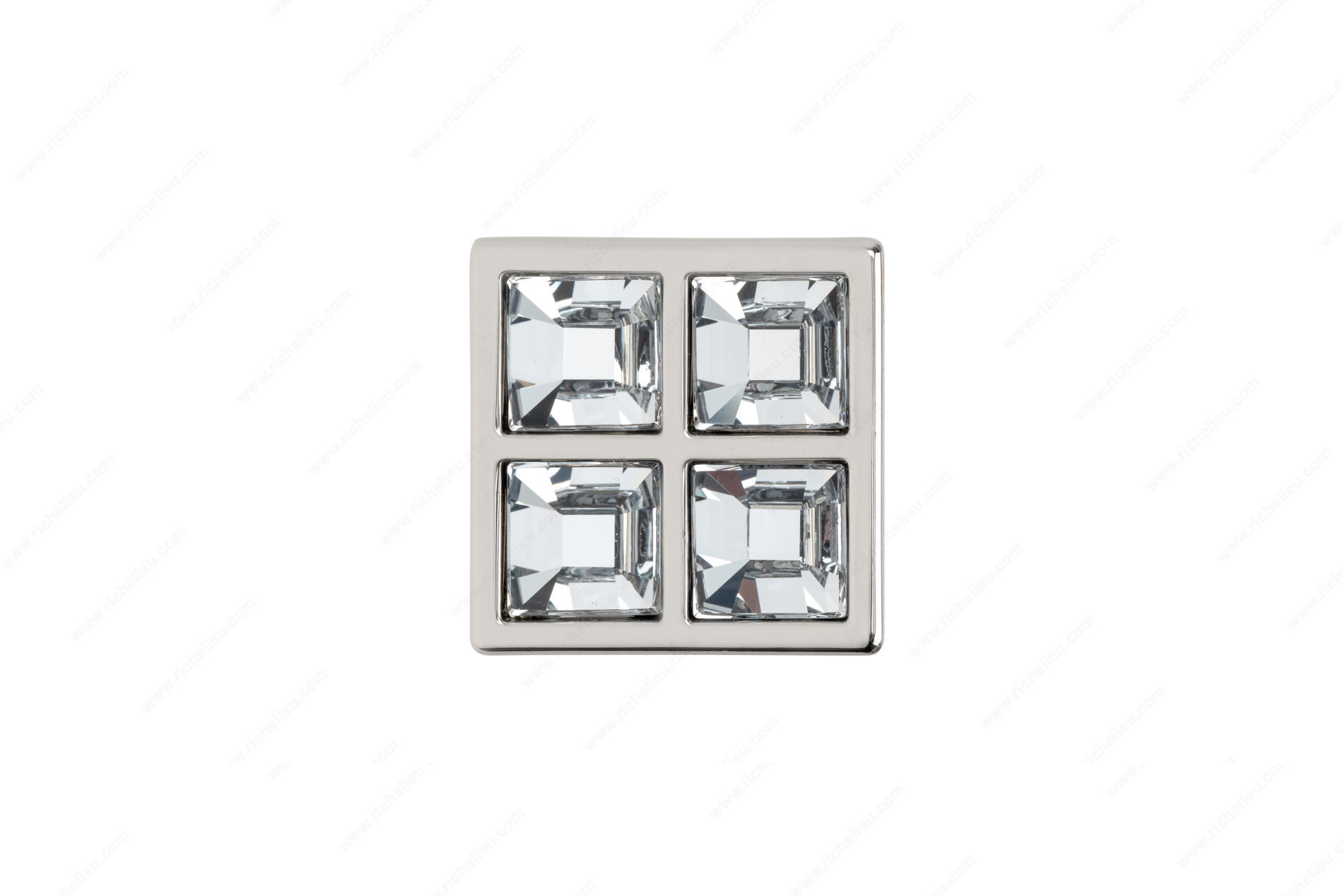 Richelieu 2422714001 Transitional Swarovski Crystal and Metal Knob offers an exceptional blend of elegance and functionality, ideal for enhancing furniture and cabinetry. Designed with a captivating square shape, this knob features dazzling Swarovski crystals embedded on its surface, providing a touch of sparkle that elevates any space. Measuring 1 1/16 inches in both width and length, with a projection of 13/16 inches, this knob is perfectly sized for easy handling while making a bold design statement. The clear crystal finish, complemented by a sleek chrome base, seamlessly integrates with various interior styles, particularly within the Transitional collection. Crafted from durable metal and adorned with premium Swarovski crystal, this knob not only enhances aesthetic appeal but also ensures longevity. It includes an M4 screw for straightforward installation, making it a practical choice for both professional builders and discerning homeowners. Shipped via UPS, the Richelieu 2422714001 is part of the distinguished Swarovski Crystal Collection, representing the perfect blend of beauty and performance. Upgrade your cabinetry and furniture with this exquisite knob, where luxury meets functionality in every detail.