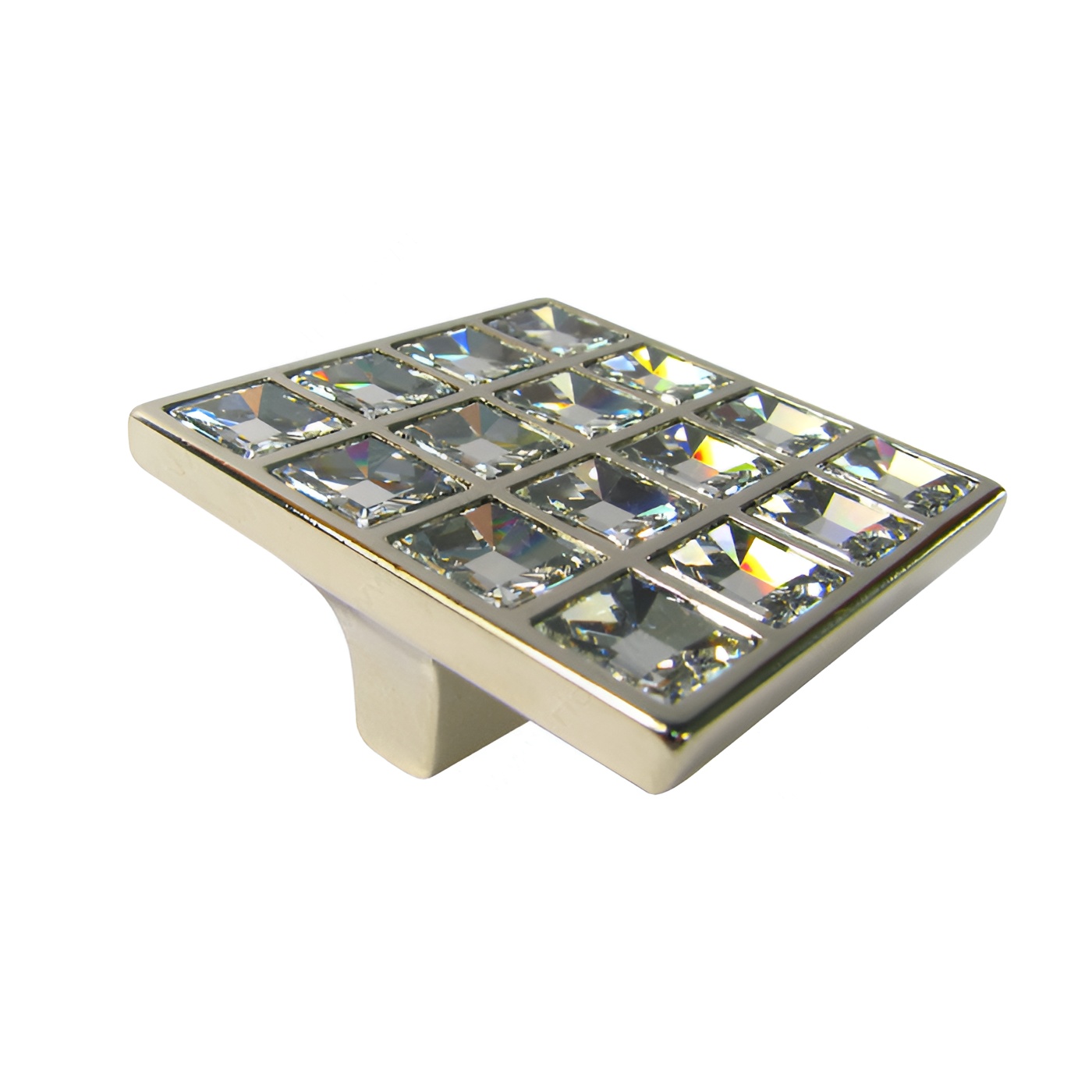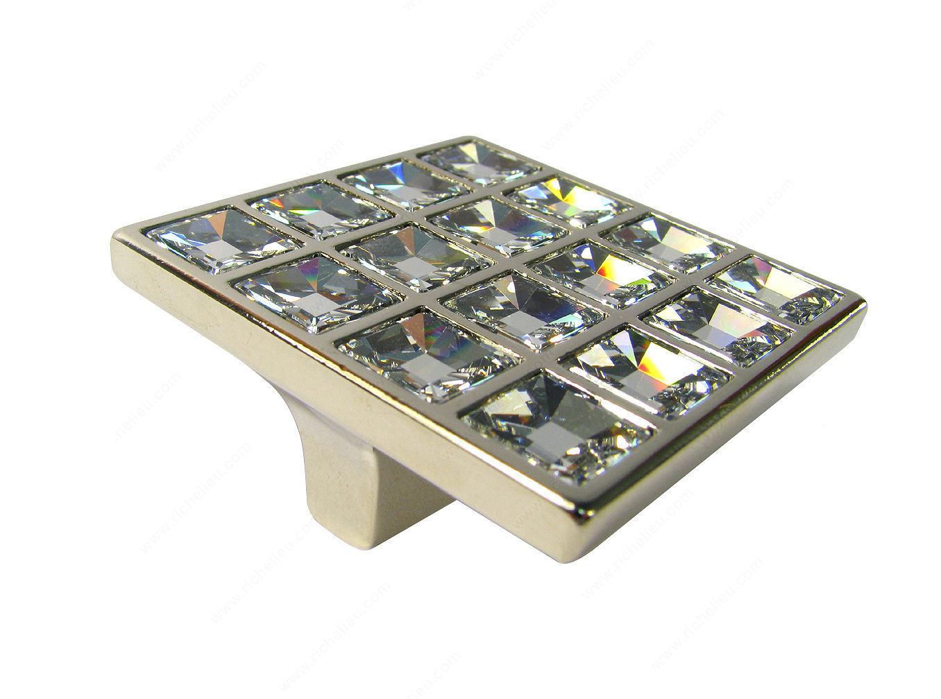 Richelieu 2425214001 Transitional Swarovski Crystal and Metal Knob - 2425 offers a stunning design that enhances the aesthetic of any furniture piece. This exquisite square knob features dazzling clear Swarovski crystals set against a sleek chrome finish, making it a perfect choice for those looking to add a touch of elegance to their décor. With an overall dimension of 2 1/16 inches in length and width, and a projection of 13/16 inches, this knob strikes a balance between functionality and style. Designed as part of the Swarovski Crystal Collection, the knob has a center-to-center measurement of 1 1/4 inches, allowing for easy installation. The included M4 screw ensures that you can securely attach it to your cabinets or drawers without hassle. The combination of metal and crystal materials not only guarantees durability but also provides a luxurious look that is sure to impress. Whether you're renovating a kitchen, updating furniture, or simply looking to enhance your home’s interior, this transitional knob seamlessly fits into various design themes. Elevate your space with the timeless beauty of the Richelieu 2425214001 knob, where every detail reflects sophistication and refinement.