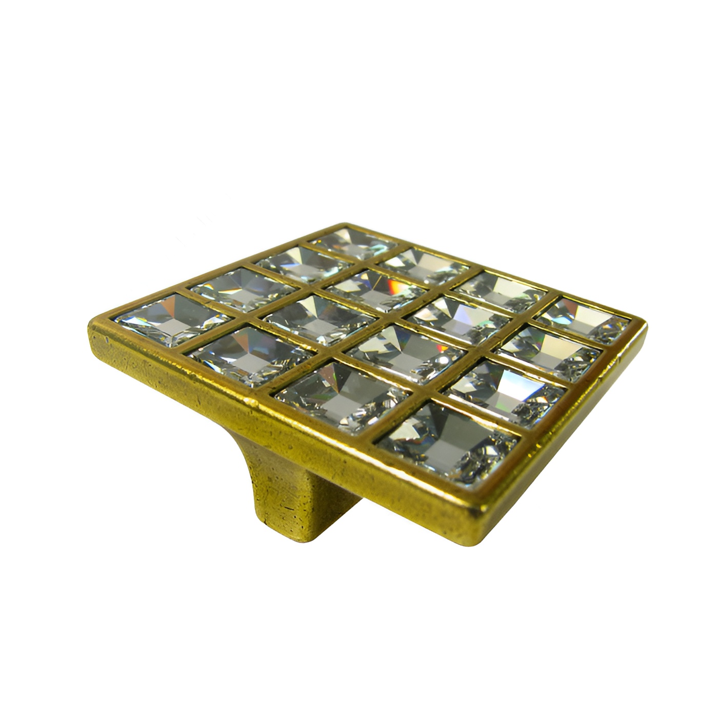 Richelieu 24252BB01 Transitional Swarovski Crystal and Metal Knob - 2425 offers a stunning design that elevates any furniture piece. This exquisite square knob showcases a dazzling clear Swarovski crystal, providing a luxurious touch that captures the eye and enhances the overall aesthetic of your cabinetry or furniture. With a center-to-center measurement of 1 1/4 inches, it is perfectly sized for various applications, making it a versatile choice for both professionals and discerning homeowners. Crafted from high-quality metal and adorned with a burnished brass finish, this knob combines durability with elegance. The overall dimensions measure 2 1/16 inches in length and width, with a projection of 13/16 inches, allowing for comfortable grip and ease of use. It comes equipped with an M4 screw, ensuring simple installation. Part of the esteemed Swarovski Crystal Collection, the Richelieu 24252BB01 knob is ideal for transitional styles, seamlessly blending classic and contemporary designs. Whether you are updating a kitchen, bathroom, or living space, this knob makes a breathtaking statement. With its elegant aesthetic and practical features, it is a perfect choice for anyone looking to infuse sophistication into their décor.