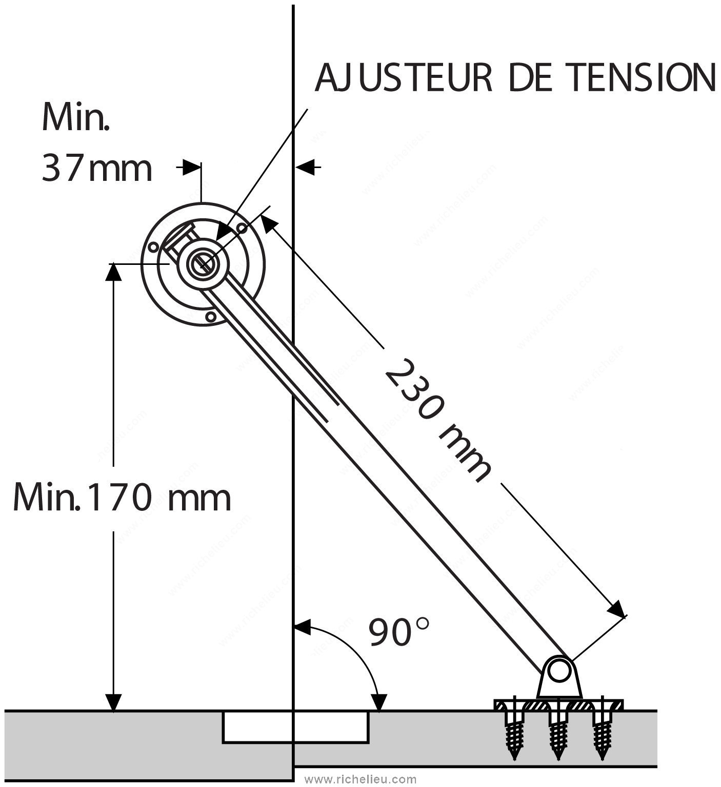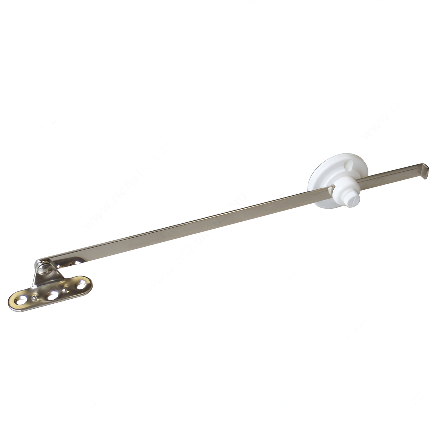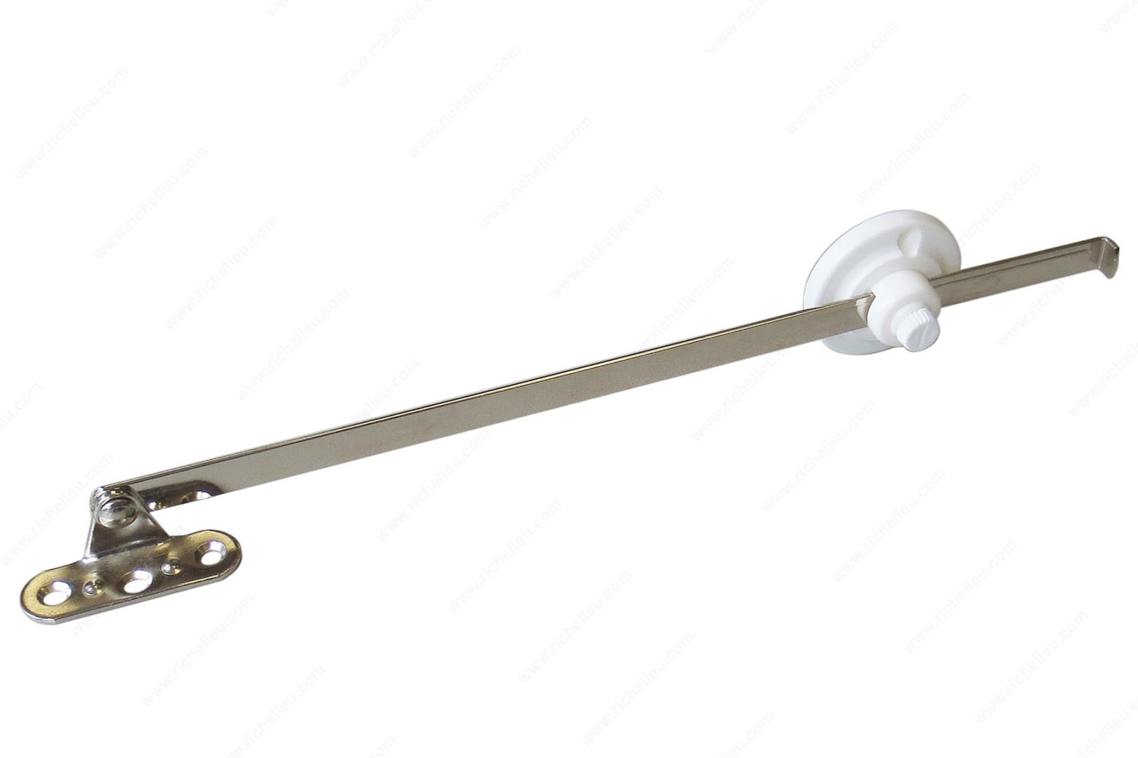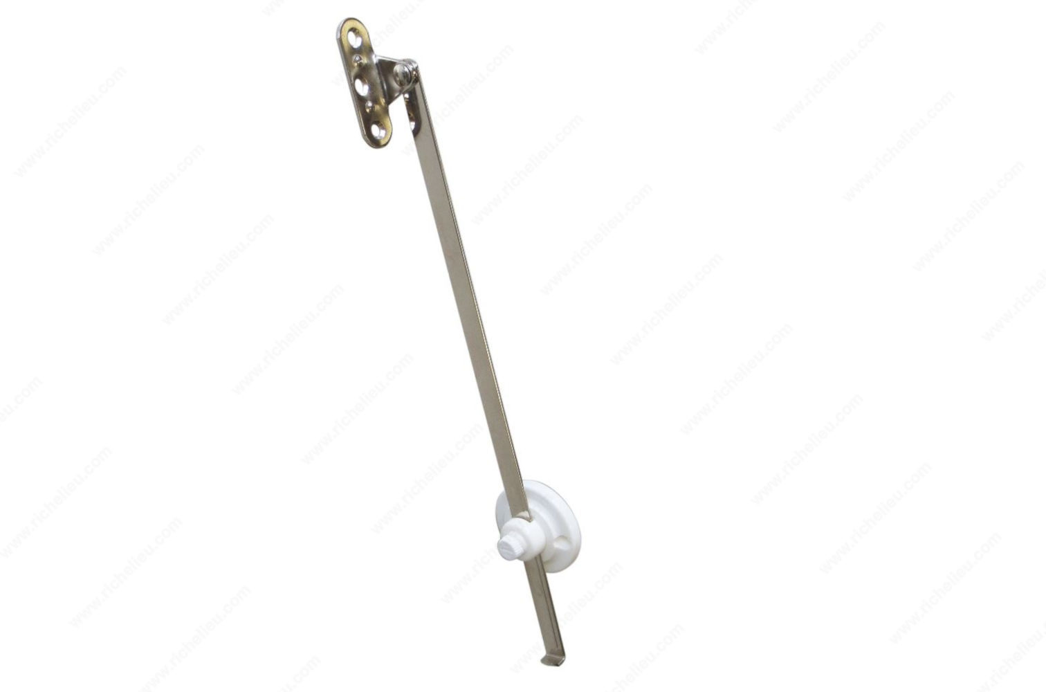 Richelieu 257938430 Reversible Flap Stay offers versatility and practicality for any cabinetry project. Designed for seamless installation on either the left or right side, this flap stay ensures a reliable and flexible solution for various applications. With a length of 7 inches, it is perfectly sized to accommodate a wide range of cabinet doors. Crafted from a durable combination of steel and plastic, this flap stay has a maximum load capacity of 22 pounds, providing ample support for your cabinet doors while maintaining a sleek appearance. The elegant white finish complements any décor, making it an ideal choice for builders and homeowners who appreciate both functionality and aesthetics. With an opening angle of 90°, the Richelieu flap stay allows for easy access to cabinet contents, enhancing user experience and convenience. Each unit is packaged individually, ensuring that you receive a quality product ready for installation. Whether you're working on a new build or a renovation project, the Richelieu 257938430 Reversible Flap Stay is a reliable choice that combines strength, style, and adaptability, making it a must-have for any professional-grade cabinetry solution.