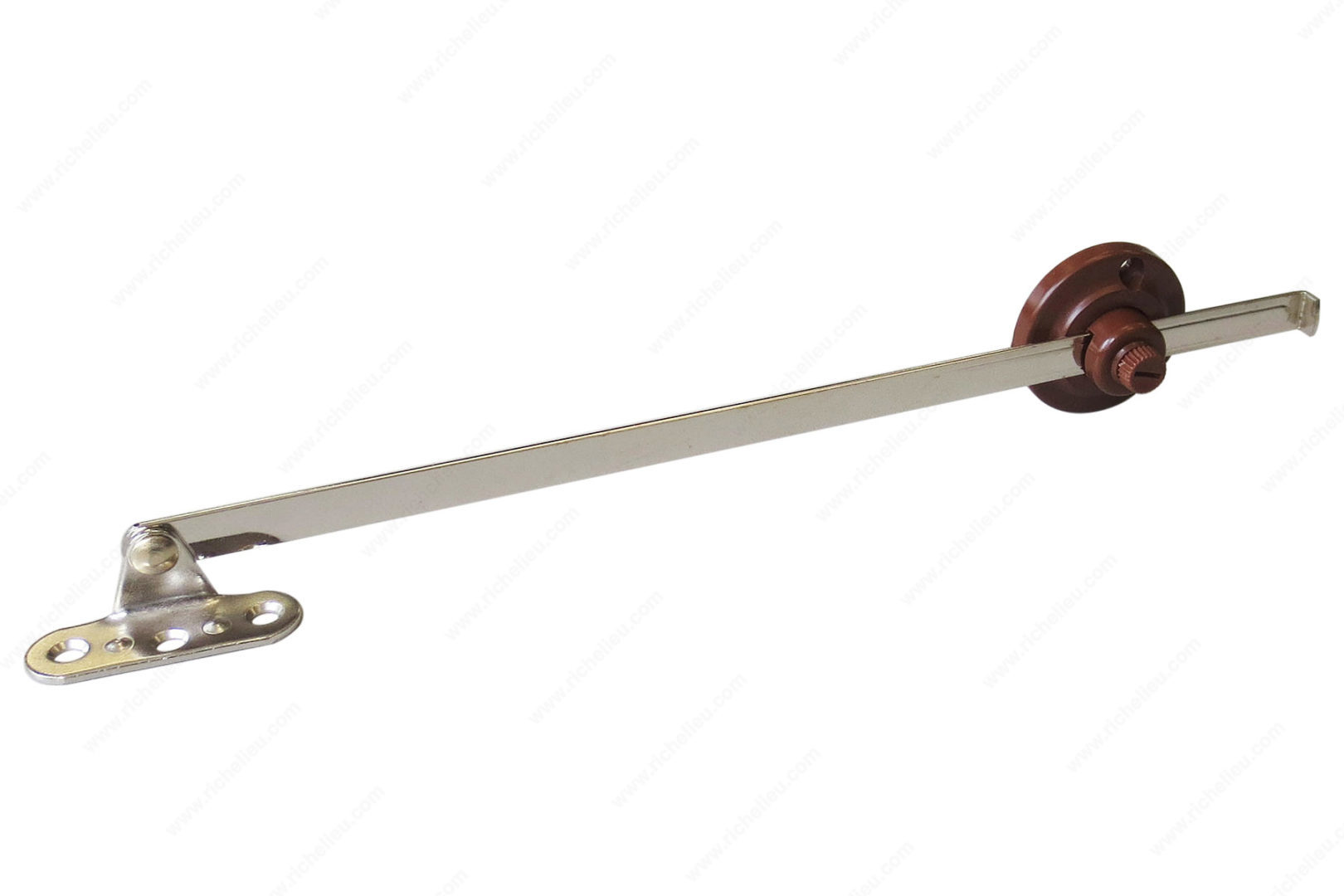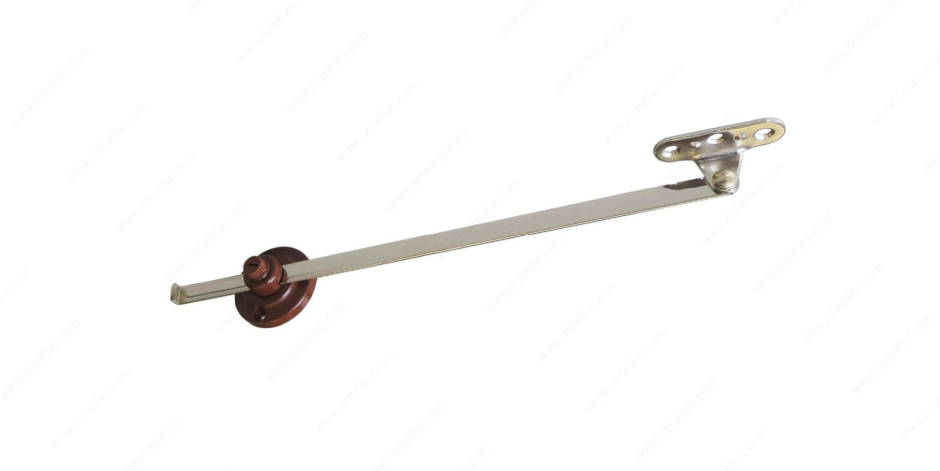 Richelieu 257938460 Reversible Flap Stay offers versatile functionality for various applications, making it an ideal addition to any project requiring efficient support. This innovative flap stay can be installed on either the left or right side, accommodating your specific design needs and enhancing the overall user experience. With a robust steel and plastic construction, this product is designed to withstand a maximum load capacity of 22 lb, ensuring reliable performance for everyday use. The 90° opening angle provides ample access while maintaining a sleek appearance, making it perfect for cabinets, furniture, or other hinged applications. Included with the flap stay is a mounting plate, simplifying the installation process and allowing for a seamless fit. The rich brown finish not only adds an elegant touch but also complements a variety of decor styles. Packaged individually, the Richelieu 257938460 is convenient to ship via UPS, ensuring that you can receive your order promptly and efficiently. Whether you are a building professional or a knowledgeable homeowner, this reversible flap stay is a practical choice that combines durability with aesthetic appeal, enhancing the functionality of your spaces.