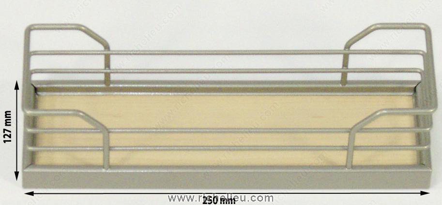 Richelieu 2582140150 Set of Arena Baskets for Wall Sliding Systems offers a practical and stylish solution for maximizing storage in narrow spaces. This set includes two expertly designed Arena baskets that feature an anti-slip surface, ensuring that your items stay securely in place. Compatible with both face frame and frameless cabinets, these baskets are ideal for organizing oils, spices, cans, and other kitchen essentials. With a capacity of 17.6 lbs, the Arena baskets are robust enough to support a variety of items without compromising on style. The attractive maple finish complemented by chrome accents not only enhances the aesthetic of your cabinets but also integrates seamlessly into any modern kitchen decor. When planning for installation, remember to add 1-1/4 inches to the width of the largest basket to determine the required opening width. Each basket measures 9 7/8 inches in depth, 2 3/4 inches in height, and 5 inches in width, making them a perfect fit for upper cabinets. The Richelieu Arena baskets are an excellent addition for anyone looking to optimize their storage solutions while maintaining a clean and organized kitchen environment.
