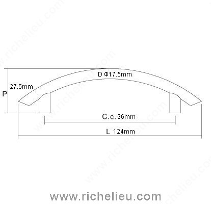 Richelieu 2602145 Modern Metal Pull - 2602 revitalizes your cabinetry with its sleek design and dimple textured finish. Constructed from durable aluminum, this pull combines modern aesthetics with functional elegance, making it a perfect addition to contemporary spaces. The satin chrome finish enhances its allure, providing a subtle yet striking contrast against your cabinet surfaces. With an overall length of 4 7/8 inches and a center-to-center measurement of 3 25/32 inches, this pull is designed for easy installation and seamless integration into various cabinetry styles. Its projection of 1 5/32 inches ensures comfortable grip, while the compact width of 11/16 inches allows for versatility in design applications. The pull's tapered posts add an extra dimension of sophistication, making it ideal for kitchens, bathrooms, and furniture pieces alike. Each unit is packaged for individual sale, and installation requires 8/32 inch screws, which are not included. This product ships via UPS, ensuring prompt delivery to your project site. Elevate your cabinetry with the Richelieu 2602145 Modern Metal Pull and experience the perfect blend of style and functionality.