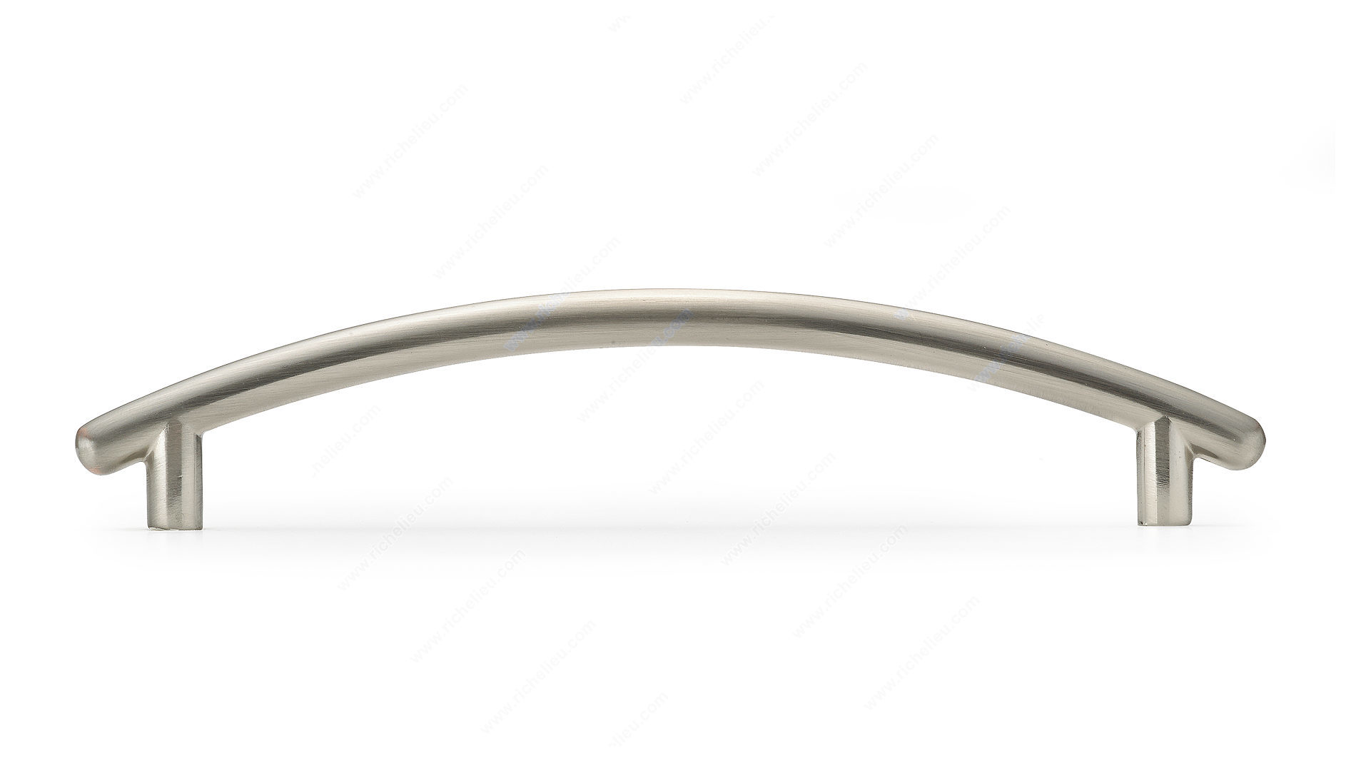 Richelieu 26202128195 Modern Metal Pull - 2620 enhances the aesthetic of any kitchen or bathroom cabinetry with its sleek, modern design. Crafted from durable zamak, this pull combines both style and functionality, making it an ideal choice for contemporary interiors. The brushed nickel finish adds a touch of sophistication, while the striking gray and chrome color scheme ensures it complements a variety of decor styles. Measuring 6 3/32 inches in length, with a center-to-center measurement of 5 1/32 inches, this pull offers comfortable handling and a distinctive look. Its overall diameter is 5/16 inches, with a projection of 1 5/16 inches, allowing for easy access while maintaining a streamlined appearance. Designed with a modern bow shape, this pull not only provides a contemporary flair but also ensures a solid grip. Installation is straightforward, requiring 8/32 inch screws (not included), making it a practical addition to your design projects. Whether you're renovating a kitchen or updating bathroom cabinets, the Richelieu 26202128195 Modern Metal Pull - 2620 is a perfect choice to elevate your space with elegance and functionality.