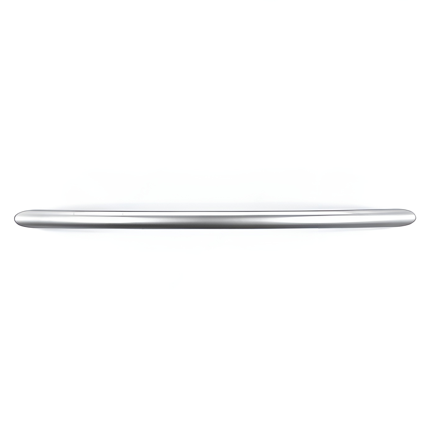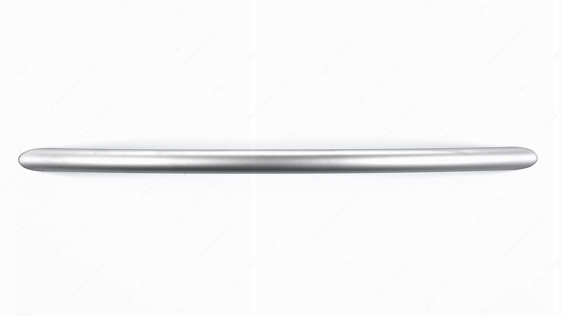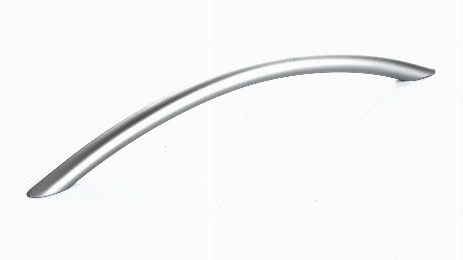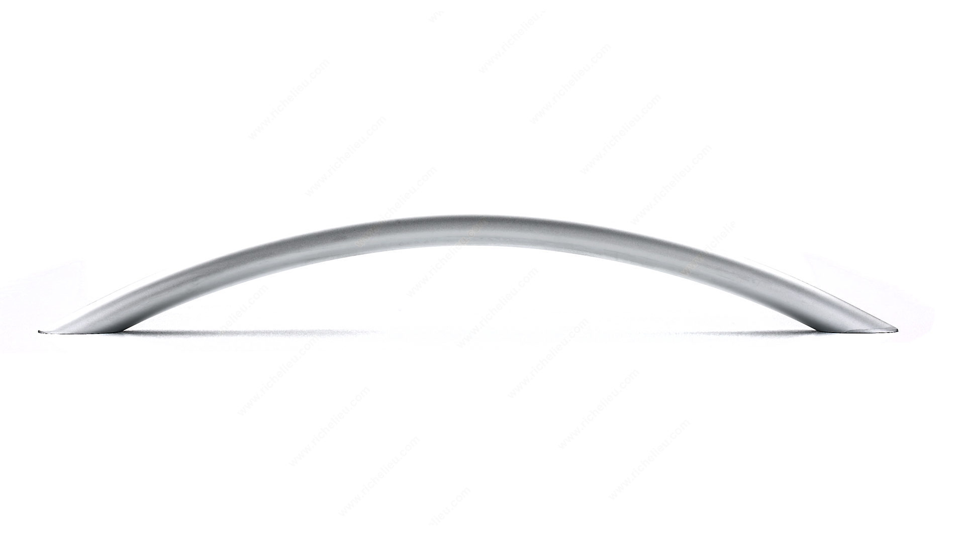 Richelieu 272192174 Modern Metal Pull - 2721 offers an elegant solution for enhancing your furniture or cabinets. This modern bow pull features a sleek arc that gracefully terminates in a flared base at each end, providing both style and functionality. Measuring 8 3/4 inches in length with a center-to-center distance of 7 9/16 inches, it is designed to fit seamlessly into contemporary interiors. Crafted from durable zamak and finished in a sophisticated matte chrome, this pull not only adds a touch of luxury but also ensures longevity and resilience. Its dimensions include a projection of 1 5/16 inches and a width of 13/32 inches, making it easy to grasp while maintaining a streamlined appearance. The gray and chrome color combination complements various design schemes, enhancing the overall aesthetic of your space. Installation is straightforward, allowing for a quick upgrade without the need for extensive tools-screws are not included but require an 8/32 inch size. Packaged per unit, the Richelieu 272192174 pull can be shipped via UPS, ensuring convenience for your projects. Elevate your cabinetry or furniture with this striking modern pull that marries form and function perfectly.