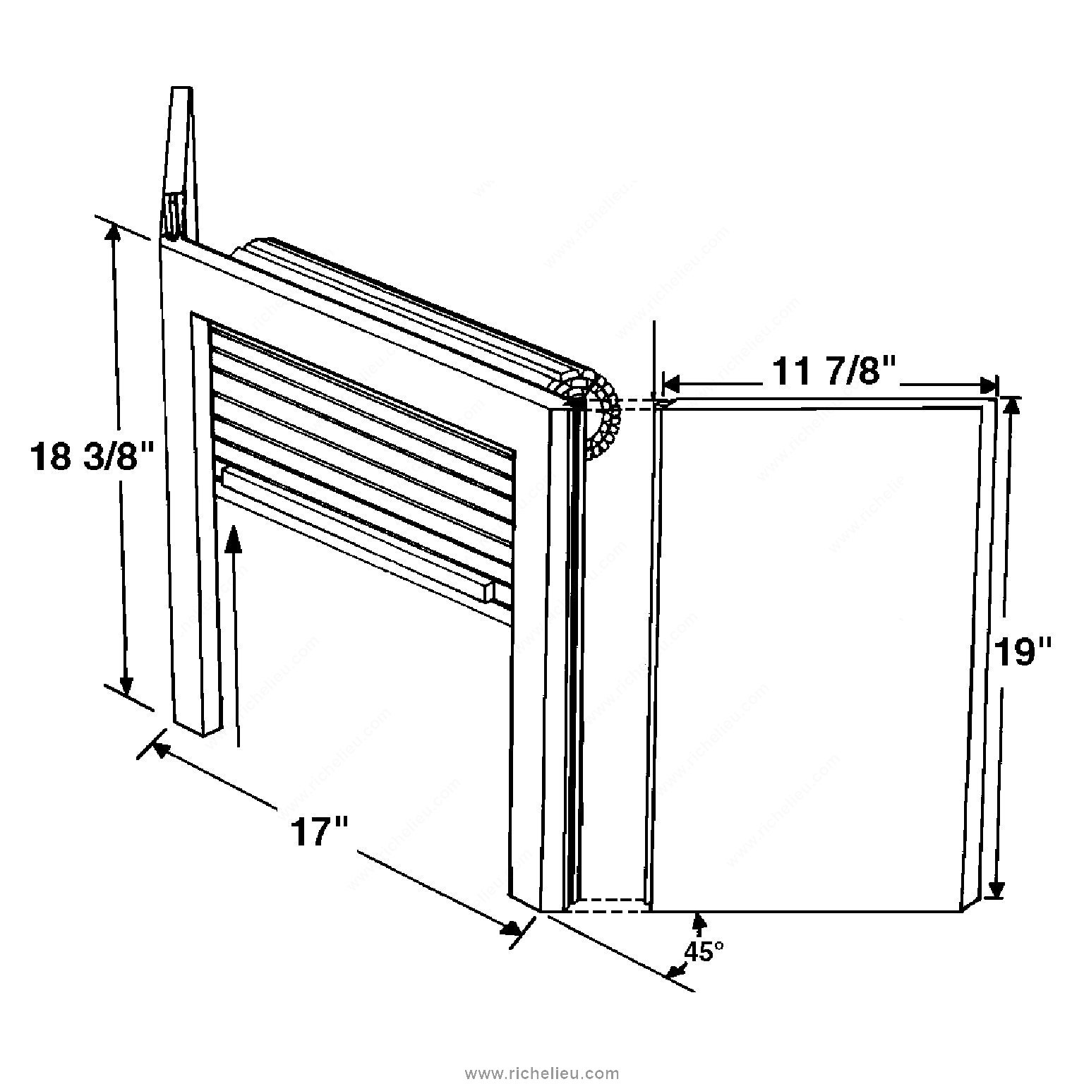 Richelieu 274150 Corner Garage offers a stylish and efficient solution for your storage needs. This wood corner tambour unit is expertly crafted from high-quality solid maple, ensuring both durability and a refined aesthetic. With its elegant maple finish, it effortlessly blends into various design schemes, whether in a modern kitchen or a traditional space. Measuring 17 inches in width, 4 19/32 inches in depth, and 18 3/8 inches in height, this corner garage maximizes storage in tight spaces, making it ideal for corners that often go underutilized. The tambour door design not only adds a unique visual appeal but also provides easy access to your stored items while keeping them neatly concealed. Included with the unit are all necessary hardware components, making installation a breeze. The backing is made of cloth, adding an extra layer of sophistication to the overall design. Additionally, the product is conveniently shipable via UPS, ensuring prompt delivery to your job site or home. Richelieu 274150 Corner Garage combines functionality with style, making it an essential addition for building professionals and discerning homeowners seeking to enhance their space without compromising on quality.