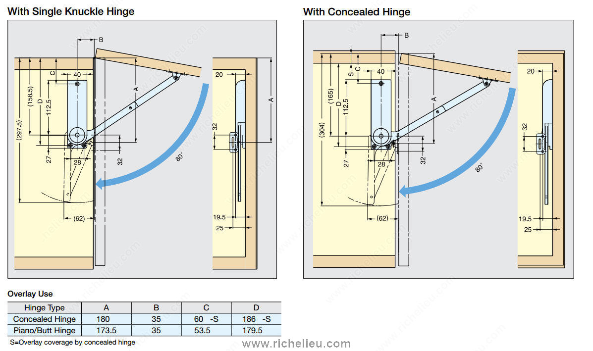Richelieu 28300230 Heavy-Duty - Upward Opening Arm is expertly designed for upward-opening flap doors, accommodating piano, butt, or concealed hinges. This robust mechanism is perfect for applications requiring secure closure and reliable support. Sold in pairs, these arms ensure that your flap doors not only stay closed but also remain firmly in the fully opened position, providing ease of access and convenience. Crafted from a combination of durable plastic and steel, the Richelieu 28300230 is built to withstand significant weight, making it ideal for heavy-duty use. The striking white finish adds a clean, modern aesthetic that seamlessly integrates into any design scheme. The lift-up opening mechanism offers smooth operation, allowing for effortless access to the contents behind the flap door. This product is particularly suited for builders and homeowners seeking dependable hardware that combines functionality with style. With the ability to ship via UPS, it’s easy to incorporate this essential component into your next project. Elevate your design with the Richelieu Heavy-Duty Upward Opening Arm, where strength meets elegance in every detail.