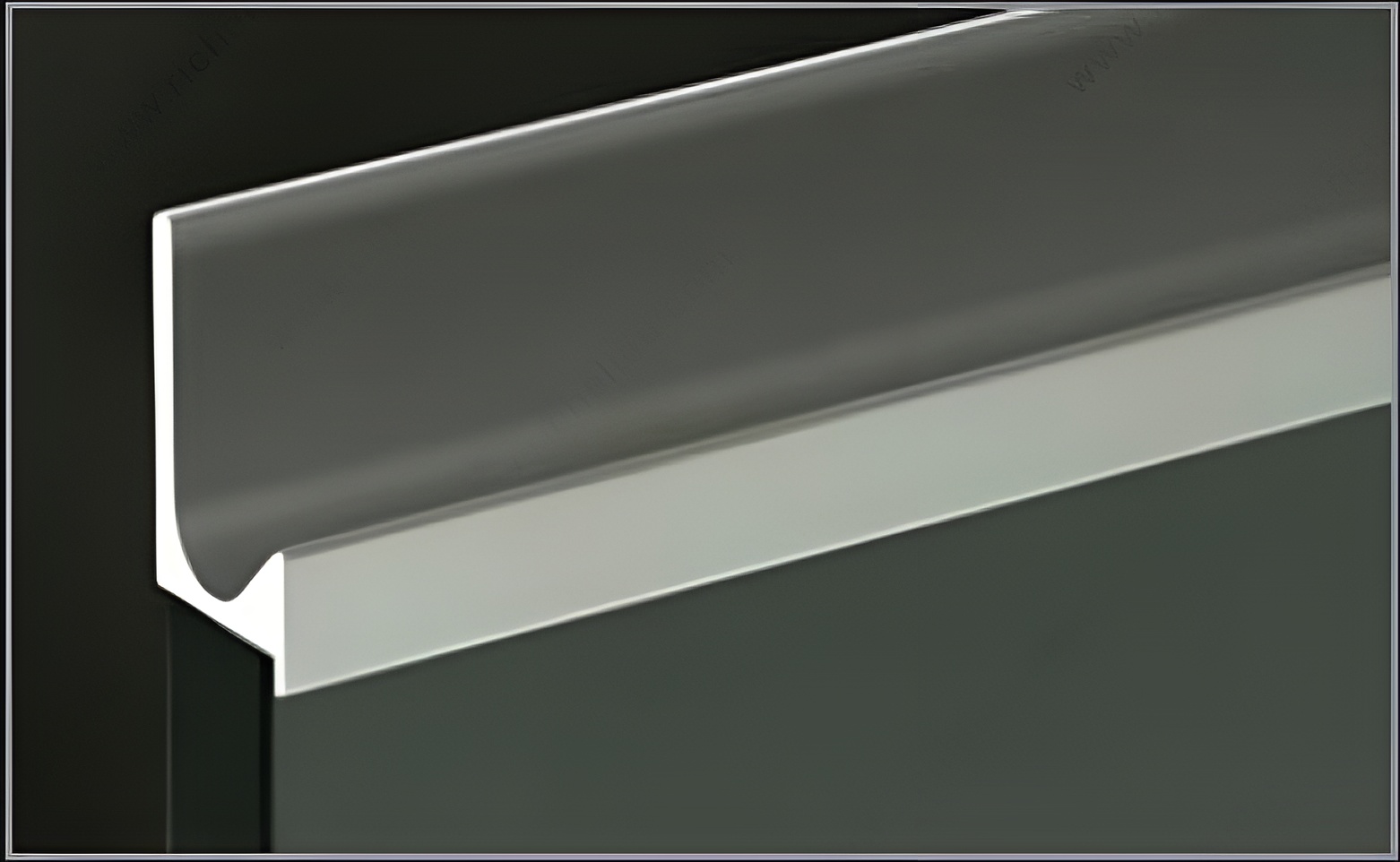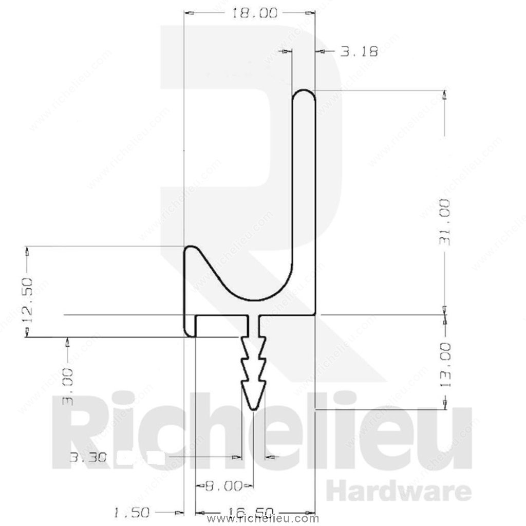 Richelieu 31881210 Modern Handle in J Shape for 5/8" Panel - 3188 is expertly designed for base cabinet doors, making it an ideal choice for contemporary and transitional kitchen designs. Its sleek, linear aesthetic not only enhances the visual appeal of cabinetry but also ensures a comfortable grip. Crafted from anodized aluminum, this handle features a sophisticated satin aluminum finish that complements a range of decor styles, while the striking gray and chrome color scheme adds a touch of elegance. Measuring 12 feet in overall length, this handle can be cut to the desired size, allowing for customization to fit your specific project needs. With a barb thickness of 1/8 inch and a groove depth of 1/2 inch, it is suited for panel thicknesses ranging from 5/8 to 21/32 inches. The overall dimensions project 1 23/32 inches, providing a substantial yet refined look. Installation is straightforward, requiring only glue (not included) for secure attachment. Perfect for professionals and knowledgeable homeowners alike, the Richelieu 31881210 handle combines function and style, making it a must-have for any modern kitchen renovation.