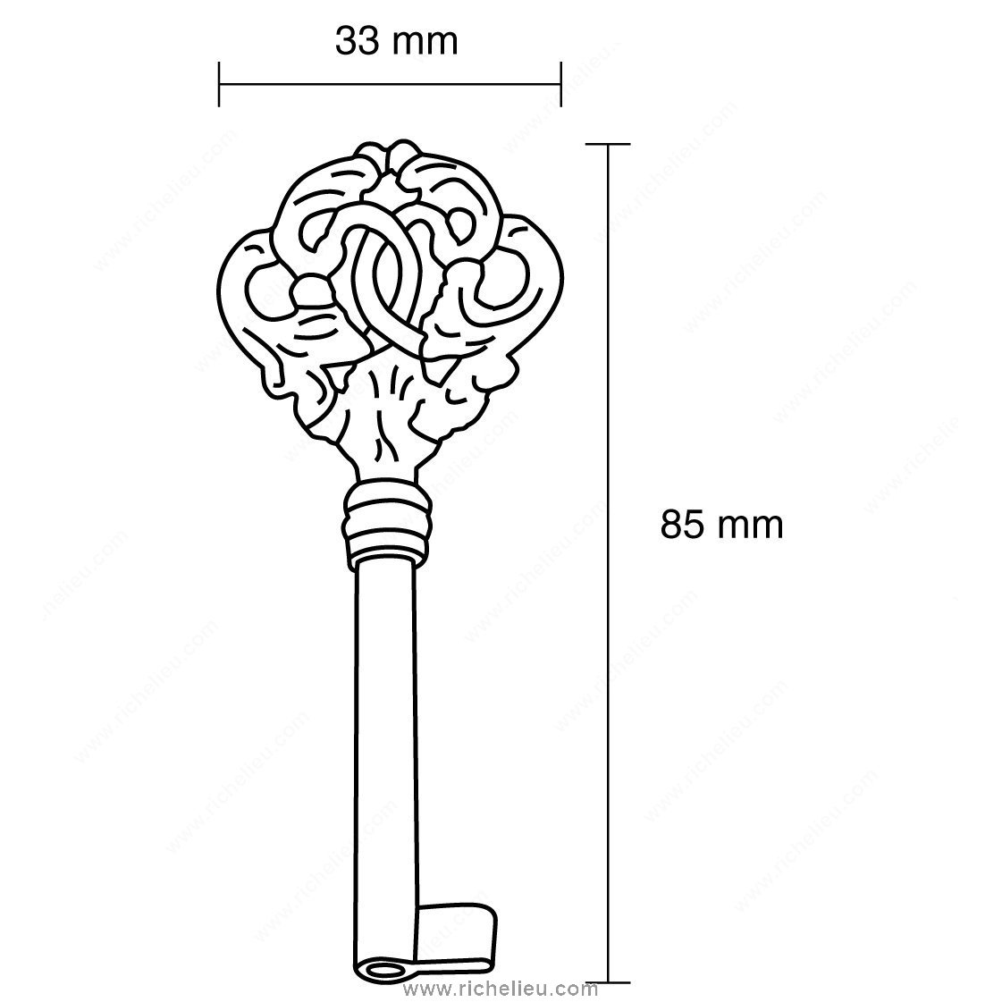 Richelieu 3372442130 Brass Key - 33724 is a classic addition to any traditional décor, expertly crafted to enhance both function and style. Made from high-quality brass, this key boasts a stunning yellow and brass finish that adds a touch of elegance to your hardware collection. With an overall projection of 3 11/32 inches and a width of 1 5/16 inches, it is designed to fit seamlessly into various applications while providing a robust and reliable locking solution. The traditional style of the Richelieu 3372442130 makes it a perfect complement to vintage or rustic interiors, offering a timeless look that never goes out of fashion. Its durable brass construction ensures longevity, making it a smart investment for both building professionals and discerning homeowners. This product ships via UPS, allowing for convenient delivery options to suit your project timelines. Ideal for cabinets, furniture, or any locking mechanism, the Richelieu Brass Key not only serves its practical purpose but also elevates the aesthetic of your spaces. Choose Richelieu for quality and craftsmanship you can trust, enhancing your environment with this exquisite accessory.