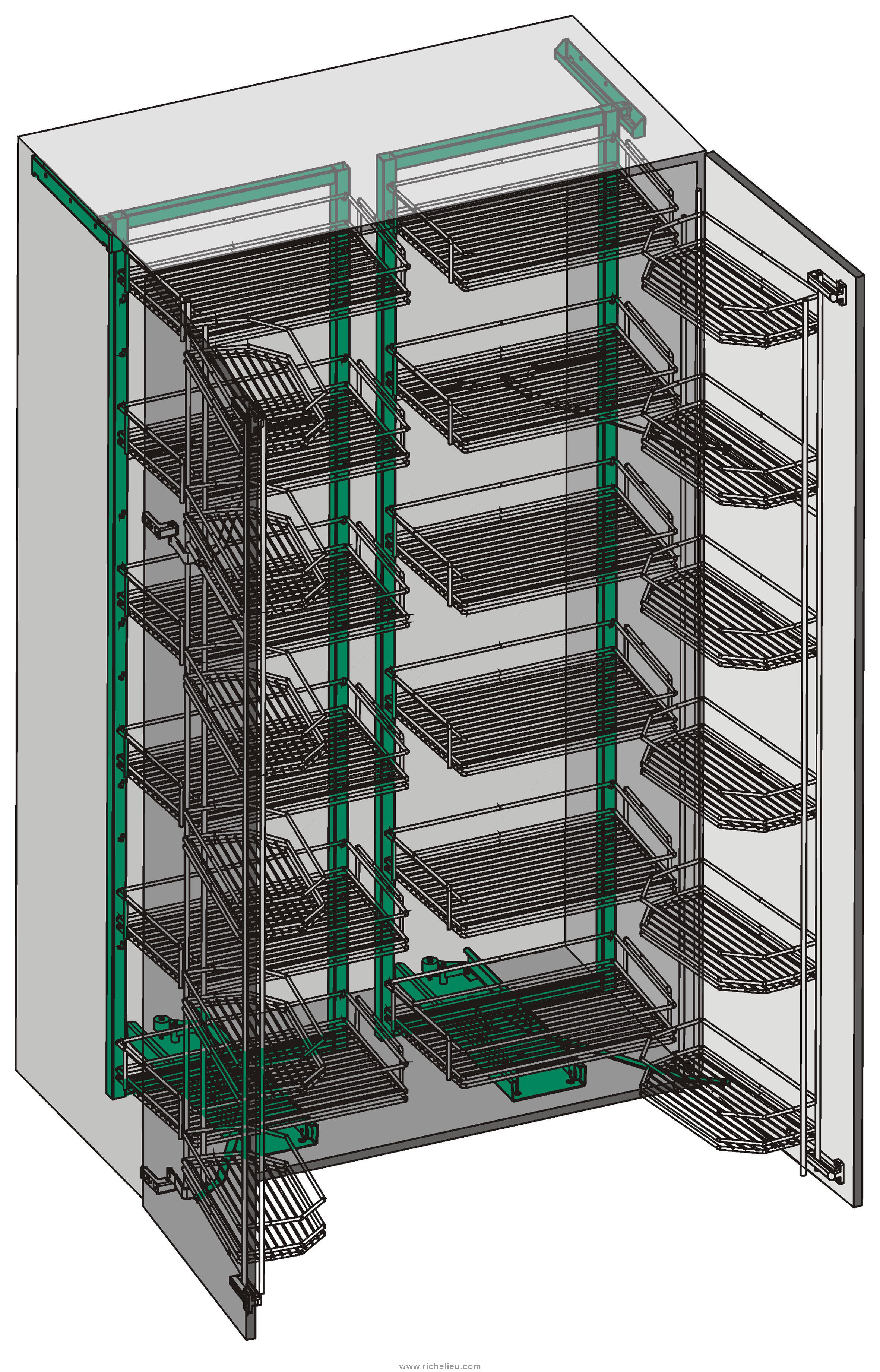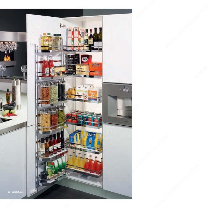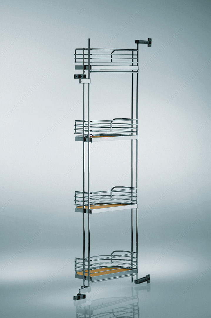 Richelieu 3441140150 Arena Door Baskets for Tandem Depot System offer a practical storage solution designed to enhance organization within your kitchen or pantry. This set includes four sturdy metal baskets with a non-slip melamine surface, ensuring your items stay in place while providing easy access. These baskets are specifically crafted for Tandem Depot systems, making them an ideal choice for wall unit and pantry cabinets. The sleek maple and chrome finish adds a touch of elegance to your storage, seamlessly blending with various kitchen styles. To ensure proper fit, the baskets require minimum interior dimensions of 19 5/8 inches in depth, 43 1/4 inches in height, and 22 1/8 inches in width. Measuring 7 3/32 inches in depth and 42 1/8 inches in height, these baskets maximize vertical space, allowing for efficient storage of food items and other kitchen essentials. The durable metal construction ensures longevity, making these baskets a reliable choice for your storage needs. Additionally, the product is easy to ship via UPS, facilitating a seamless delivery process. Upgrade your storage solutions with the Richelieu Arena Door Baskets and experience the perfect blend of functionality and style.