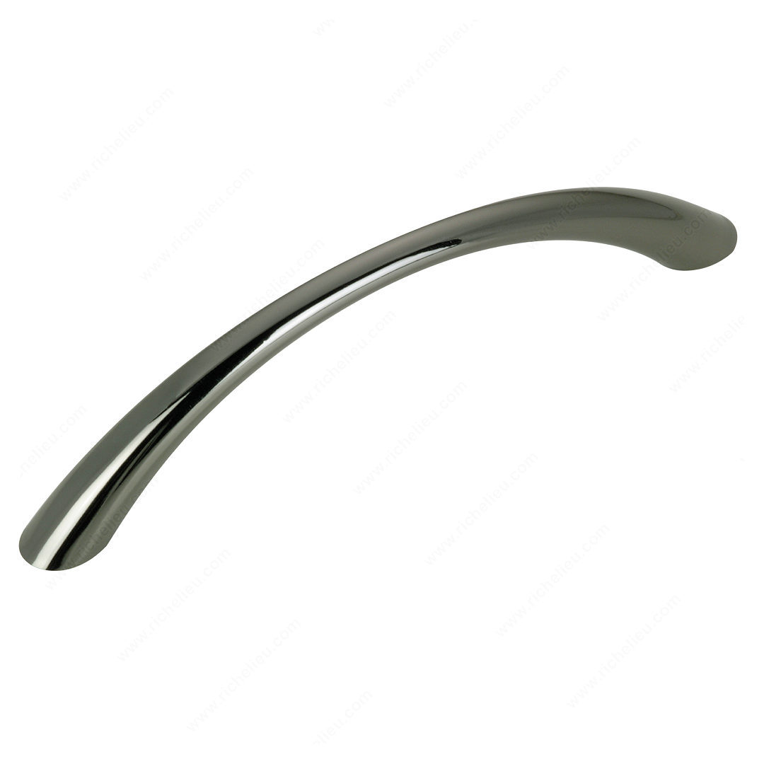 Richelieu 351191 Modern Metal Pull - 3511 offers a contemporary touch to your furniture and cabinetry with its sleek design and elegant flared ends. Crafted from durable Zamak, this pull ensures longevity while enhancing the aesthetic appeal of any space. The modern bow shape not only provides a comfortable grip but also adds a stylish element to your interiors. Measuring 4 1/2 inches in length with a center-to-center distance of 3 25/32 inches, this pull is designed for easy installation, making it a perfect choice for both professionals and DIY enthusiasts looking to upgrade their furniture. The striking black nickel finish complements a variety of design schemes, adding a sophisticated contrast that stands out beautifully against lighter surfaces. With a projection of 1 3/32 inches and a width of 13/32 inches, this modern pull is both functional and visually appealing. While screws are not included, the standard 8/32 inch size ensures compatibility with a wide range of applications. Sold individually, the Richelieu 351191 pull is an ideal solution for transforming your cabinets and drawers, providing both practicality and a fresh, modern look.