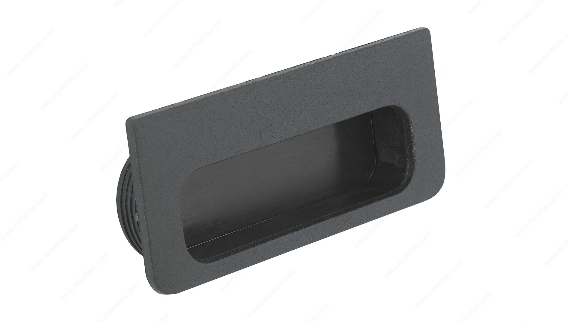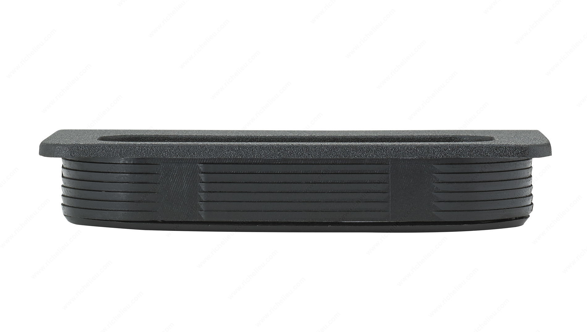 Richelieu 40250900 Modern Recessed Nylon Pull - 4025 offers a sleek and functional solution for contemporary cabinetry. Designed to fit seamlessly into your cabinet doors, this recessed pull is particularly recommended for sliding door applications, enhancing both style and usability. With overall dimensions of 4 7/32 inches in length and 1 7/8 inches in width, this pull provides ample grip while maintaining a low-profile appearance. The drilling dimensions measure 35 mm (1-3/8 in) in width, 100 mm (3-15/16 in) in length, and the milling depth is 15 mm (9/16 in), ensuring a precise fit in your cabinetry. Crafted from durable nylon, the pull features a modern matte black finish that adds a touch of sophistication to any interior space. This product is designed with a projection of just 1/8 inch, making it a discrete choice that complements minimalist designs. Please note that screws (8/32 in) are not included, allowing for flexibility in installation. Whether you're upgrading a kitchen, bathroom, or any space requiring stylish and functional hardware, the Richelieu recessed pull combines practicality with modern aesthetics, making it an excellent addition to your cabinetry.