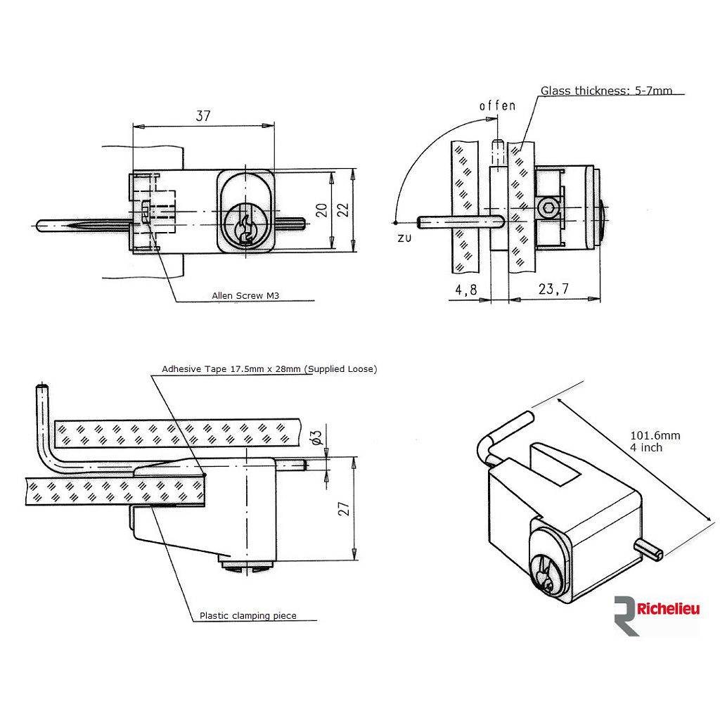 Richelieu 404031195 Sliding Glass Door Lock offers a robust solution for securing your sliding glass doors with ease and style. Designed with a pin tumbler mechanism, this lock features a key turn of 360°, allowing for smooth operation and reliable security. The hook bolt turn of 90° ensures that your door is firmly secured when locked, providing peace of mind for homeowners and building professionals alike. Crafted from solid brass, the lock boasts a sleek matte nickel finish that enhances its durability while complementing modern architectural designs. With dimensions of 7/8 in height and 1 15/32 in width, this lock is optimized for doors with a maximum thickness of 9/32 in, making it versatile for various installations. The Richelieu 404031195 lock is equipped with identical #1 keys, ensuring convenience and easy access for multiple users. Its reversible installation feature allows for flexibility, accommodating different door configurations. Whether you're upgrading existing fixtures or installing new ones, this sliding glass door lock combines functionality with aesthetics, making it an essential addition to your home or project. Ship via UPS for quick delivery, and experience the quality that Richelieu products are known for.