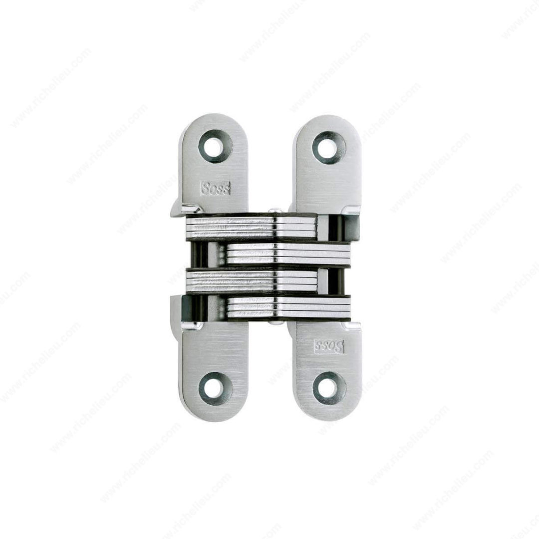 Richelieu 429216145 Concealed Steel Hinge - For Hinge 216 offers an exceptional combination of style and durability for your door installations. Designed for both wood and metal doors, this hinge ensures a clean, contemporary appearance while providing functionality that meets various application needs. With a generous 180° opening angle and reversible handedness, this hinge accommodates a wide range of door configurations. Its satin chrome finish adds a sleek touch, while the steel construction ensures long-lasting performance. The hinge is designed for mortise mounting and is easy to install with included screws, making it a practical choice for professionals and homeowners alike. Measuring 4 5/8 inches in length and 1 inch in width, this hinge is suitable for doors with a minimum thickness of 1 3/8 inches. It features a door/jamb gap of 15/64 inches and offers a fire resistance rating of 20 minutes, ensuring safety alongside aesthetic appeal. The product is UL certified (R13634) and includes all necessary fixing materials. For a hinge that balances functionality with a modern design, the Richelieu 429216145 is an ideal solution for your next project.
