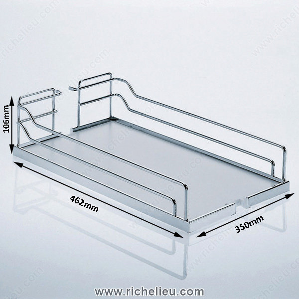 Richelieu 4386140100 Arena Baskets for Dispensa Systems are designed to optimize your food storage solutions, making organization effortless and stylish. Finished in an elegant gray and chrome, these baskets seamlessly blend functionality with a modern aesthetic, enhancing any kitchen or pantry space. With dimensions of 13 3/4 inches in width, 18 1/4 inches in depth, and a height of 4 3/16 inches, these baskets offer ample storage capacity while fitting perfectly into wall unit and pantry cabinets. It's important to note that a minimum interior depth of 19 5/8 inches and width of 14 1/4 inches is required for installation, ensuring a secure and stable fit. The Arena Baskets are designed with versatility in mind, catering to various food storage needs while maintaining a clean and tidy appearance. Their robust construction promises durability, making them a reliable choice for both professional kitchens and home settings. Plus, the ease of shipping via UPS means you can have these baskets delivered directly to your location without hassle. Elevate your storage solutions with Richelieu 4386140100 Arena Baskets, where practicality meets sophisticated design.