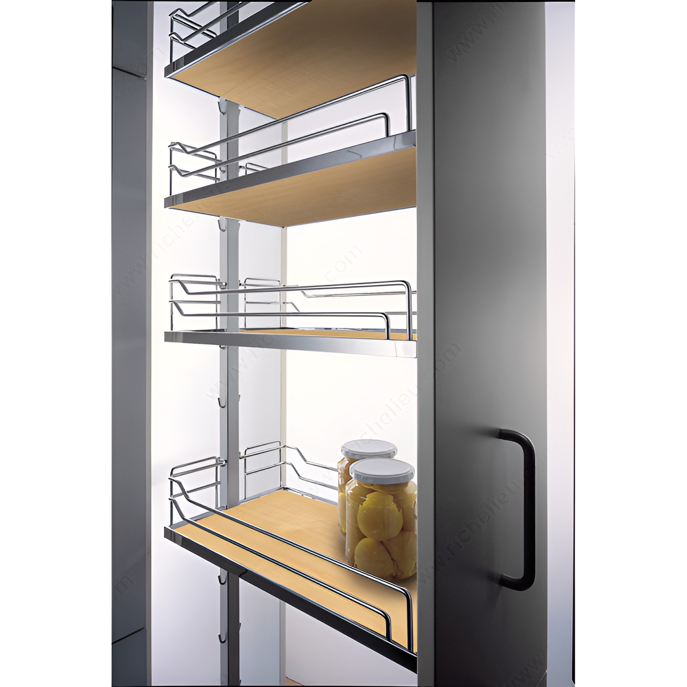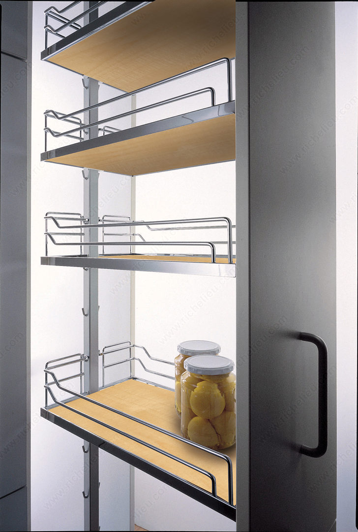 Richelieu 4386140150 Arena Baskets for Dispensa Systems offer a seamless solution for food storage and overall organization within your kitchen or pantry. Designed for wall units and pantry cabinets, these baskets combine functionality with a refined aesthetic, featuring a stylish maple and chrome finish that complements various decor styles. Measuring 13 3/4 inches in width, 18 1/4 inches in depth, and standing at a height of 4 3/16 inches, these baskets are engineered to maximize storage efficiency. They require a minimum interior space of 19 5/8 inches in depth and 14 1/4 inches in width, ensuring a perfect fit for your existing cabinetry. The Arena Baskets provide a sleek, easy-access solution for storing pantry items, condiments, and kitchen essentials while maintaining an uncluttered environment. Their durable construction and attractive design make them not only practical but also a stylish addition to your kitchen setup. Additionally, the Richelieu Arena Baskets ship conveniently via UPS, ensuring that your order arrives promptly and efficiently. Elevate your kitchen organization with these thoughtfully designed baskets that blend form and function effortlessly.