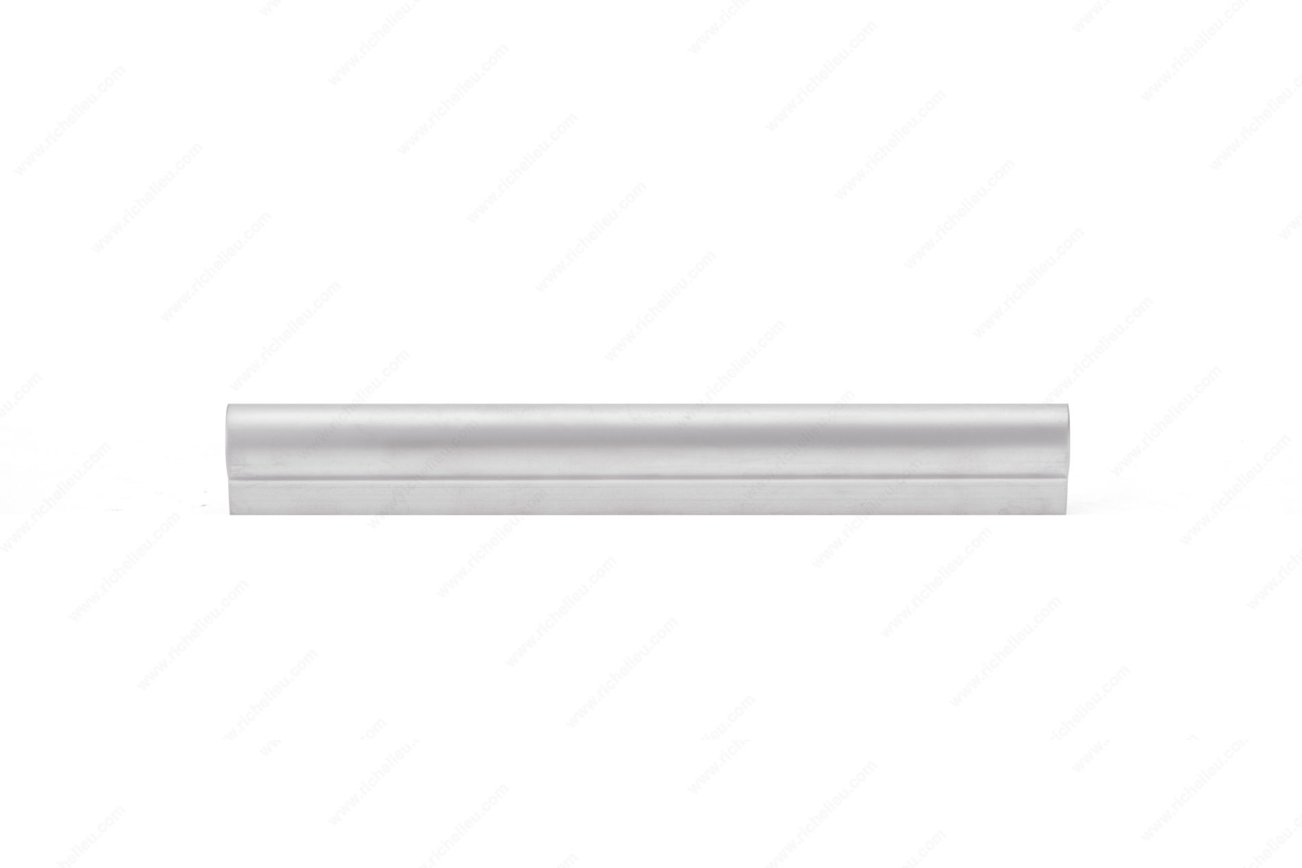 Richelieu 4601128184 Contemporary Aluminum Pull - 4601 offers a sleek, modern design that enhances the aesthetic of any contemporary kitchen or bathroom. Crafted from durable aluminum, this pull features a clean rounded shape that not only elevates visual appeal but also provides a comfortable grip. The matte nickel finish, coupled with gray and chrome accents, adds a refined touch to cabinetry while seamlessly blending with various color schemes. With an overall length of 5 29/32 inches and a center-to-center measurement of 5 1/32 inches, this pull is ideal for cabinet doors and drawers alike. The overall width measures 9/16 inches, and the projection from the surface is 25/32 inches, ensuring easy access without sacrificing style. Designed for modern spaces, it accommodates an 8/32 inch screw, which is not included, for straightforward installation. This product ships via UPS, making it a convenient choice for professionals and homeowners who value efficiency. The Richelieu 4601128184 Contemporary Aluminum Pull is an excellent addition to your design toolkit, merging functionality with a sophisticated aesthetic that will impress in any setting. Upgrade your cabinetry with this stylish hardware today.