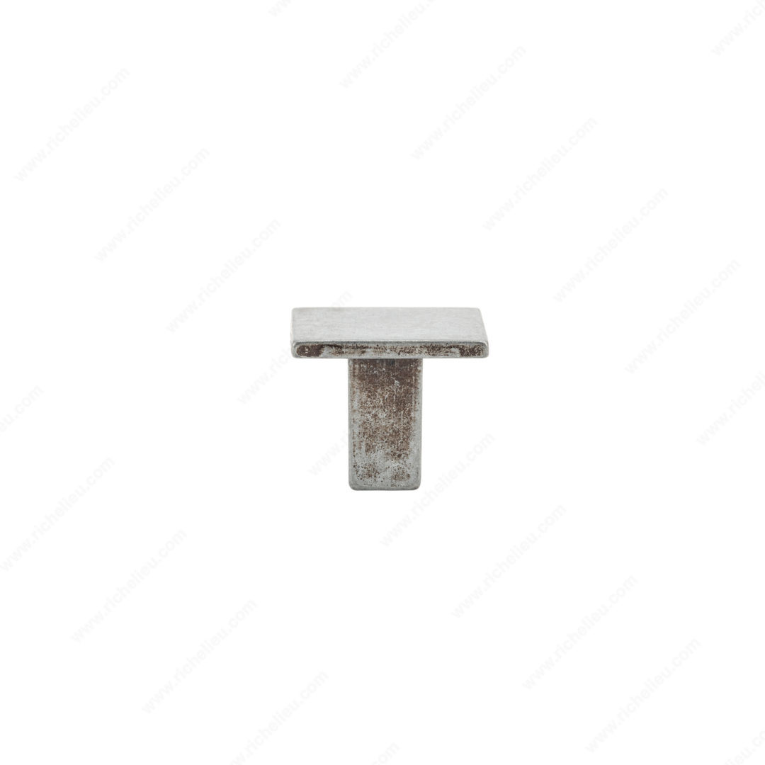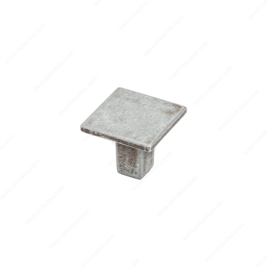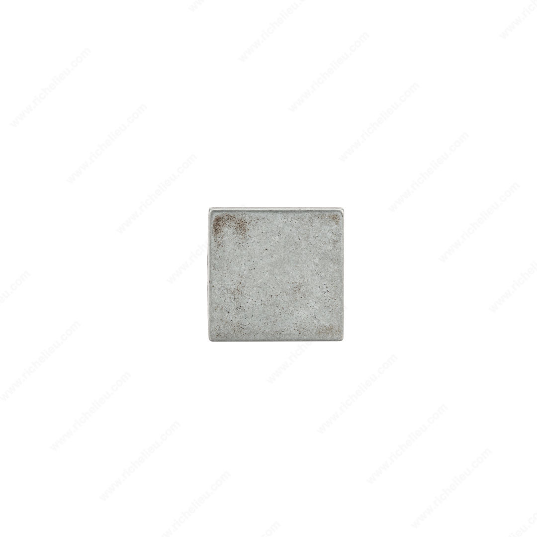 Richelieu 49430142 Modern Metal Knob - 494 combines style and functionality to elevate your furniture and cabinetry. This square knob, featuring a vintage pewter finish, exudes an industrial charm that seamlessly complements contemporary and rustic designs alike. Measuring 1 3/16 inches in length and width, with a projection of 1 1/32 inches, this knob offers a comfortable grip while maintaining a sleek profile. Crafted from durable steel, the knob ensures longevity and resilience, making it an ideal choice for high-traffic areas. The gray and chrome color palette adds a subtle elegance, enhancing the aesthetic appeal of any space. Designed as part of the complete 494 collection, this knob can effortlessly coordinate with other elements in the series, providing a cohesive look throughout your home or commercial project. Installation is straightforward, as the knob comes with an M4 screw included, ensuring a secure fit. Whether you're updating cabinetry in a kitchen, bathroom, or office, the Richelieu 49430142 is an excellent choice for builders and knowledgeable homeowners seeking to combine modern design with practical functionality. With its appealing design and robust construction, this knob is sure to impress and endure.