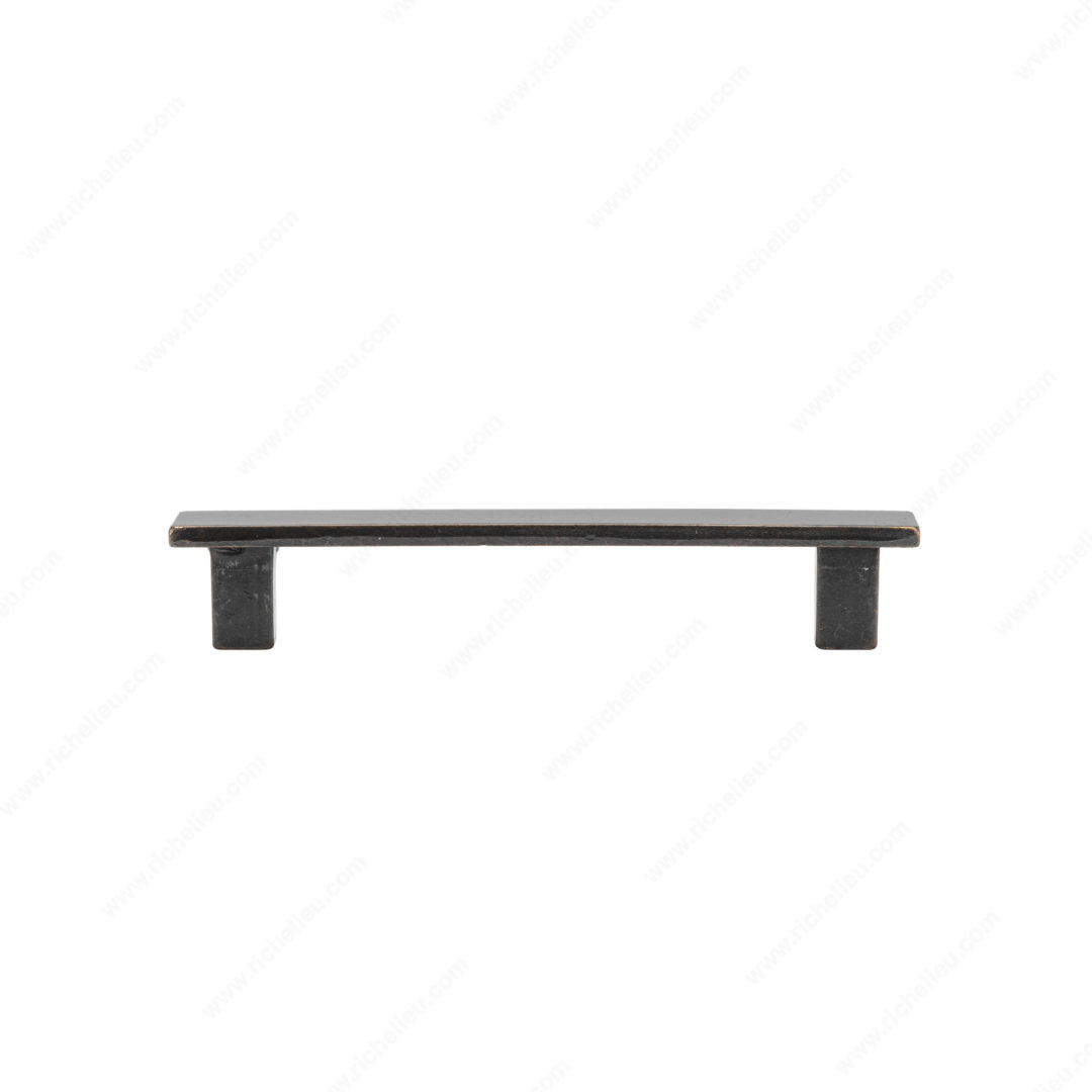 Richelieu 4948909 Modern Metal Pull - 4948 features an angular design that embodies contemporary style, making it an ideal choice for modern lofts and urban settings. Crafted from durable steel and finished in a striking matte black iron, this pull not only enhances the aesthetic of furniture and cabinetry but also ensures longevity and resilience. With an overall length of 4 21/32 inches and a width of 7/8 inch, the pull is perfectly sized for a variety of applications, while the center-to-center measurement of 3 25/32 inches allows for easy installation. Its projection of 29/32 inches provides a comfortable grip, making it functional as well as stylish. This modern pull is part of the comprehensive 494 collection by Richelieu, allowing for seamless integration across different pieces of furniture. Each pull comes with M4 screws included, simplifying the installation process. Whether you're updating cabinetry or adding a distinctive touch to furniture pieces, the Richelieu 4948909 Modern Metal Pull is designed to make a statement while offering practical functionality. Elevate your projects with this sophisticated hardware solution that exemplifies quality and modern design.