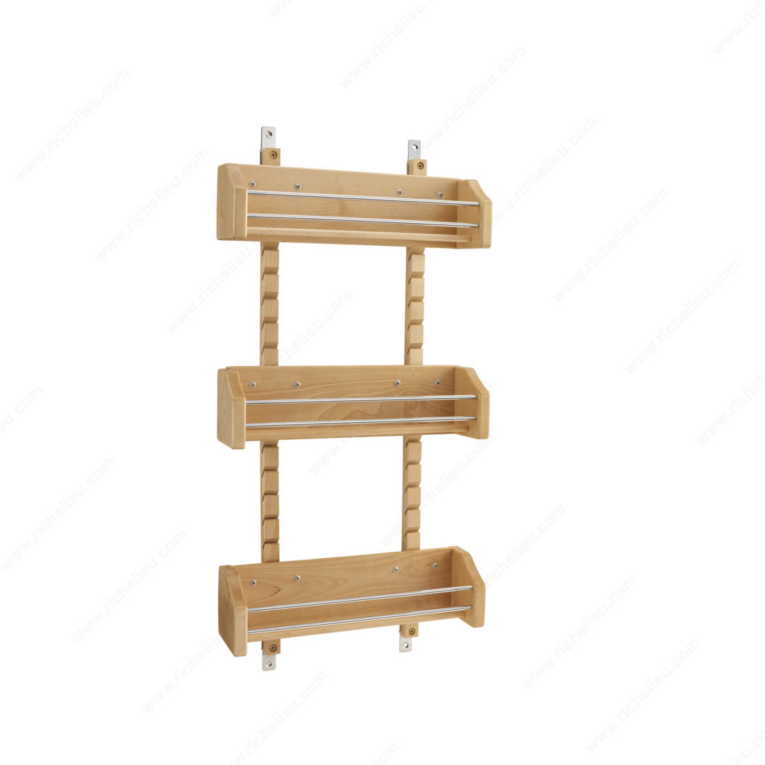 Richelieu 4ASR18 Rev-A-Shelf adjustable Door Mounting Spice Rack offers an innovative solution for maximizing kitchen space while keeping your spices conveniently accessible. Designed to mount on the back of cabinet doors, this adjustable wood spice rack provides three bins that can be positioned to suit your storage needs, ensuring they won't interfere with your cabinet shelves. Crafted from natural maple, this spice rack not only enhances functionality but also adds a touch of elegance to your cabinetry. With dimensions of 25 inches in height, 13 1/8 inches in width, and a depth of just 4 inches, it fits seamlessly into both upper and base cabinets. For optimal installation, a minimum interior width of 15 inches for framed cabinets or 13 1/4 inches for frameless cabinets is required, along with a minimum depth of 4 1/2 inches. This spice rack is easy to install and can be adapted as your spice collection changes, making it a versatile addition to any kitchen. Ship via UPS for your convenience, and enjoy the benefits of organized spices at your fingertips with the Richelieu 4ASR18 Rev-A-Shelf adjustable Door Mounting Spice Rack.