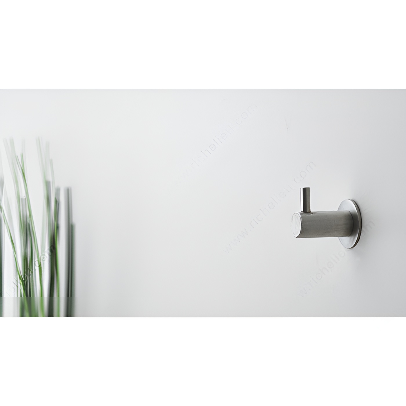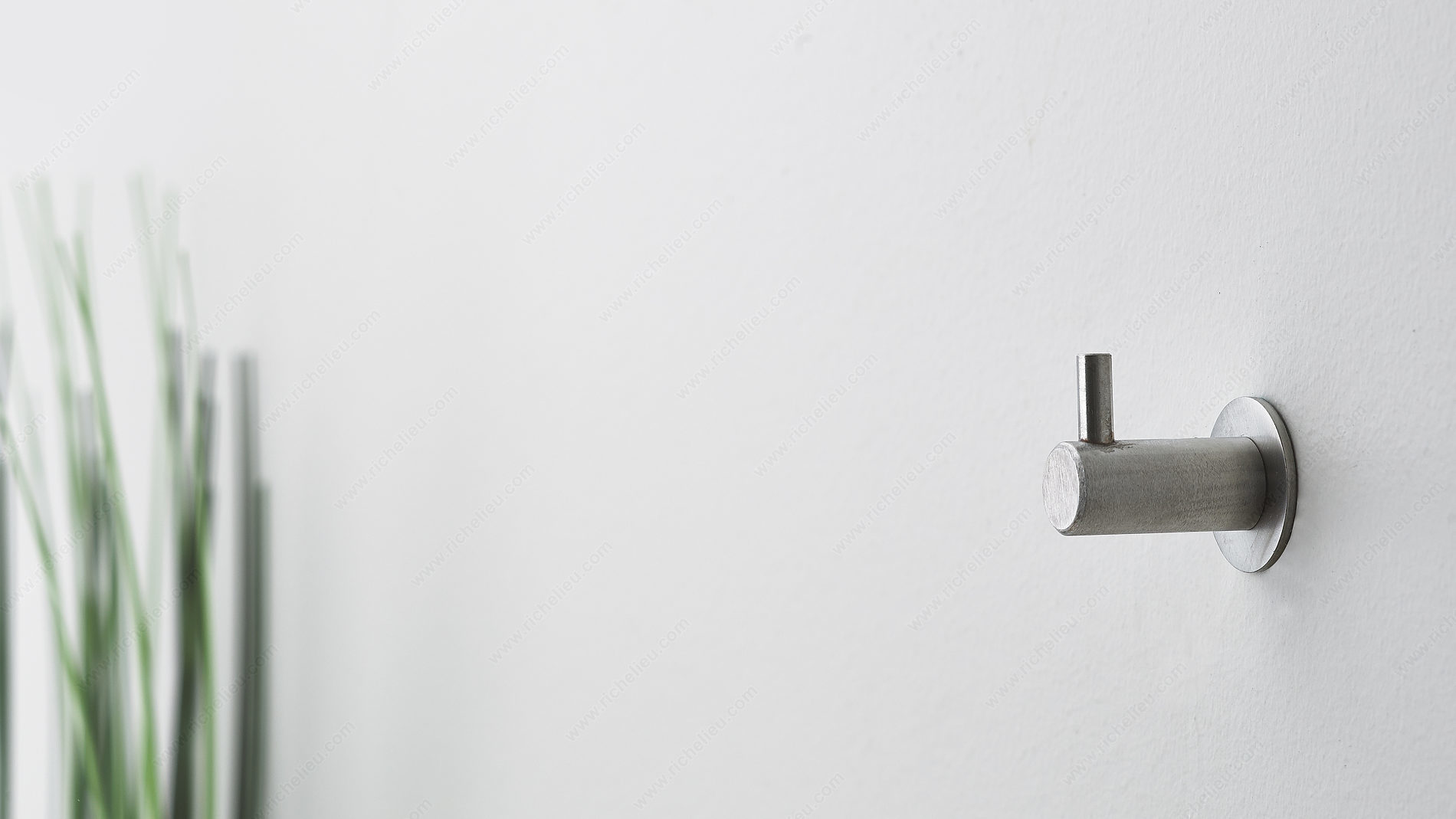 Richelieu 51127170 Modern Stainless Steel Hook offers a perfect blend of simplicity and contemporary design, making it an ideal choice for modern interiors. Crafted from durable 304 stainless steel, this hook not only provides a sleek aesthetic with its gray and chrome finish but also ensures long-lasting performance. Its minimalist "Simple Hook" style complements various décor themes, from residential kitchens to professional spaces. With overall dimensions of 5/8 inches in diameter and height, the hook has a projection of 1 3/8 inches, allowing it to fit seamlessly into tight spaces without compromising functionality. The load capacity of 11 lbs makes it suitable for hanging a variety of items, such as kitchen utensils, coats, or towels, while the included screw/nail simplifies installation. Each hook is packaged per unit, ensuring you can order exactly what you need for your project. The modern stainless steel finish not only enhances the hook's appearance but also makes it resistant to corrosion, ensuring it remains a reliable addition to any space. For those looking to elevate their interior design with practical yet stylish hardware, the Richelieu 51127170 Modern Stainless Steel Hook is an excellent choice.