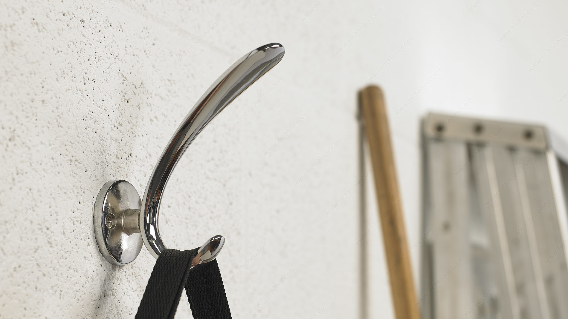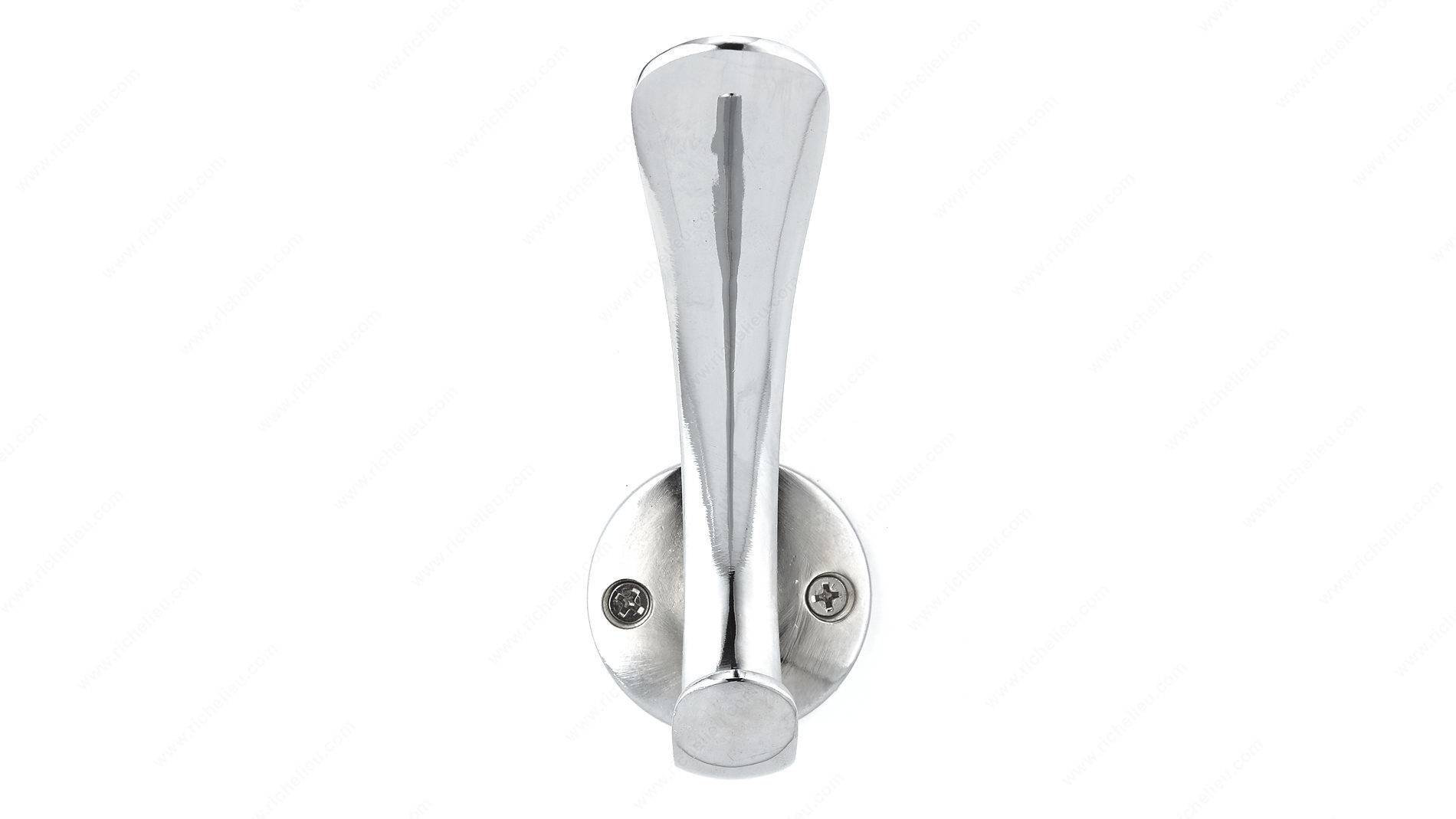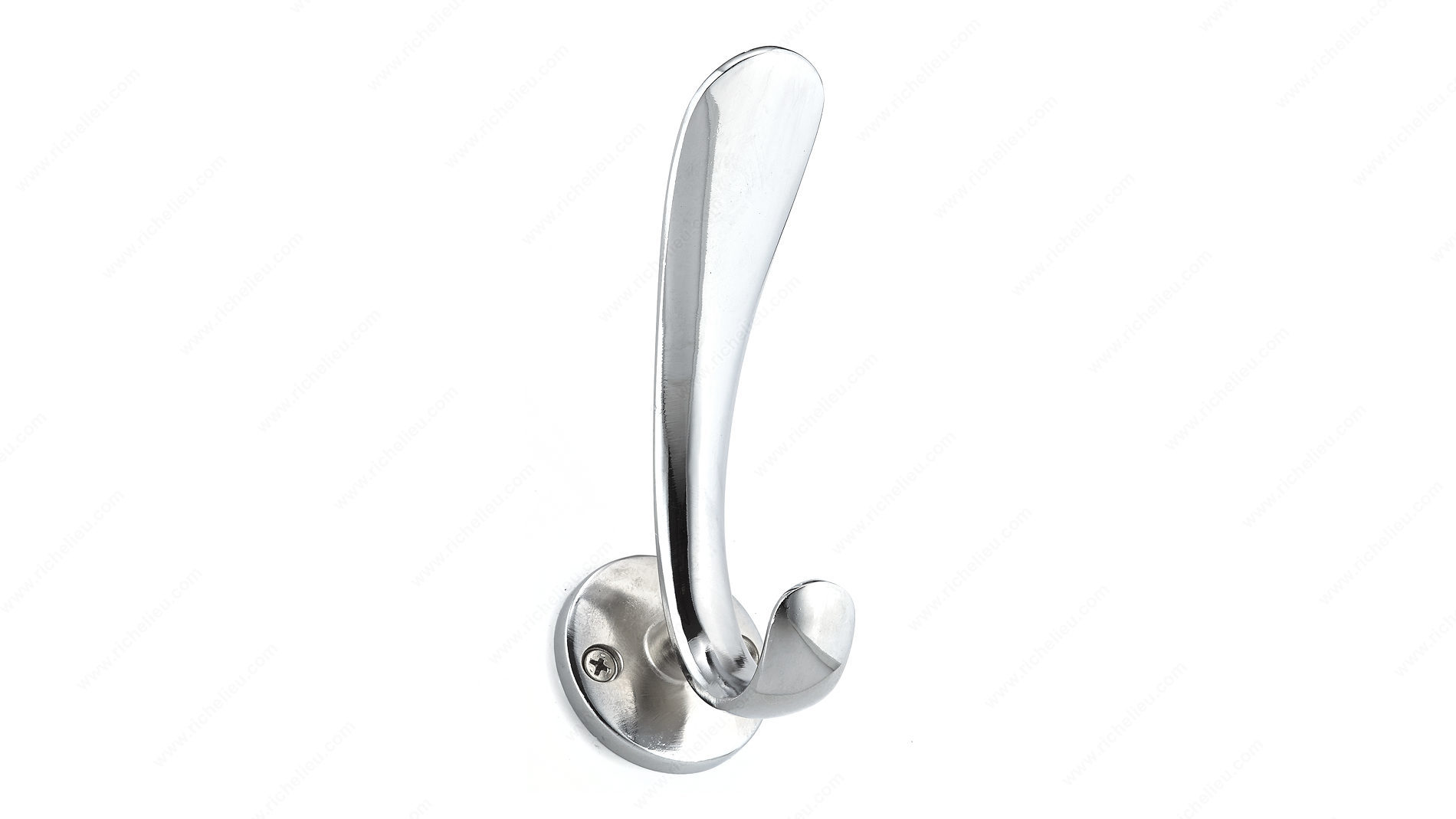 Richelieu 512310140 Modern Metal Hook - 5123 delivers a sleek and stylish solution for contemporary spaces. With its clean lines and modern design, this double hook adds a touch of sophistication while providing practical functionality. Finished in a brilliant chrome, it seamlessly blends with various decor styles, making it an ideal choice for both residential and commercial applications. Measuring 5 21/32 inches in height, 1 31/32 inches in width, and projecting 4 11/32 inches, this hook is designed to hold a substantial load of up to 22 pounds. For optimal performance, it is recommended to mount the hook directly to wall studs, typically located at 16-inch intervals. If studs are not available, appropriate drywall anchors (not included) should be used for secure installation, ensuring reliability and safety. The modern metal construction not only provides durability but also adds a contemporary flair to any entryway, bathroom, or kitchen. With its versatile gray and chrome color scheme, the Richelieu 512310140 hook is perfect for organizing coats, bags, or towels, elevating both functionality and style in your space. Enhance your interior with this chic and practical accessory that exemplifies modern elegance.