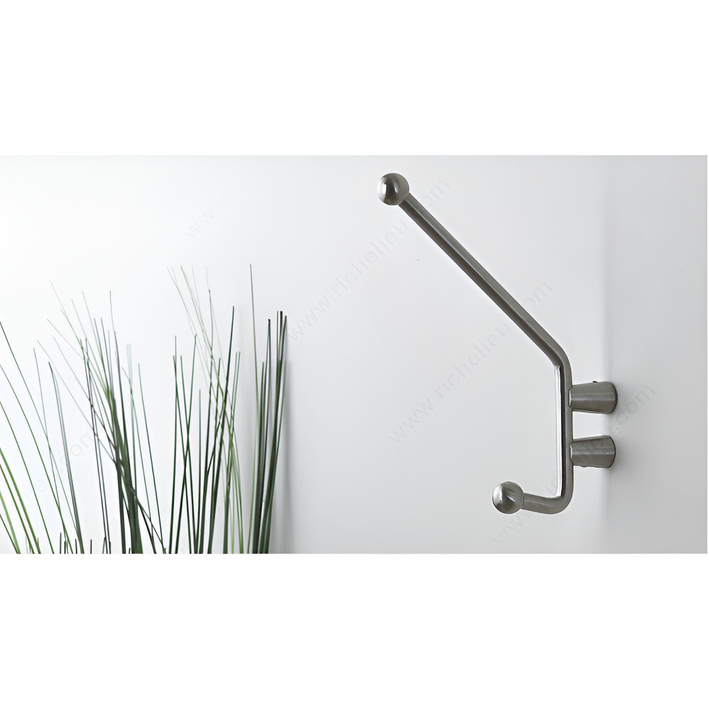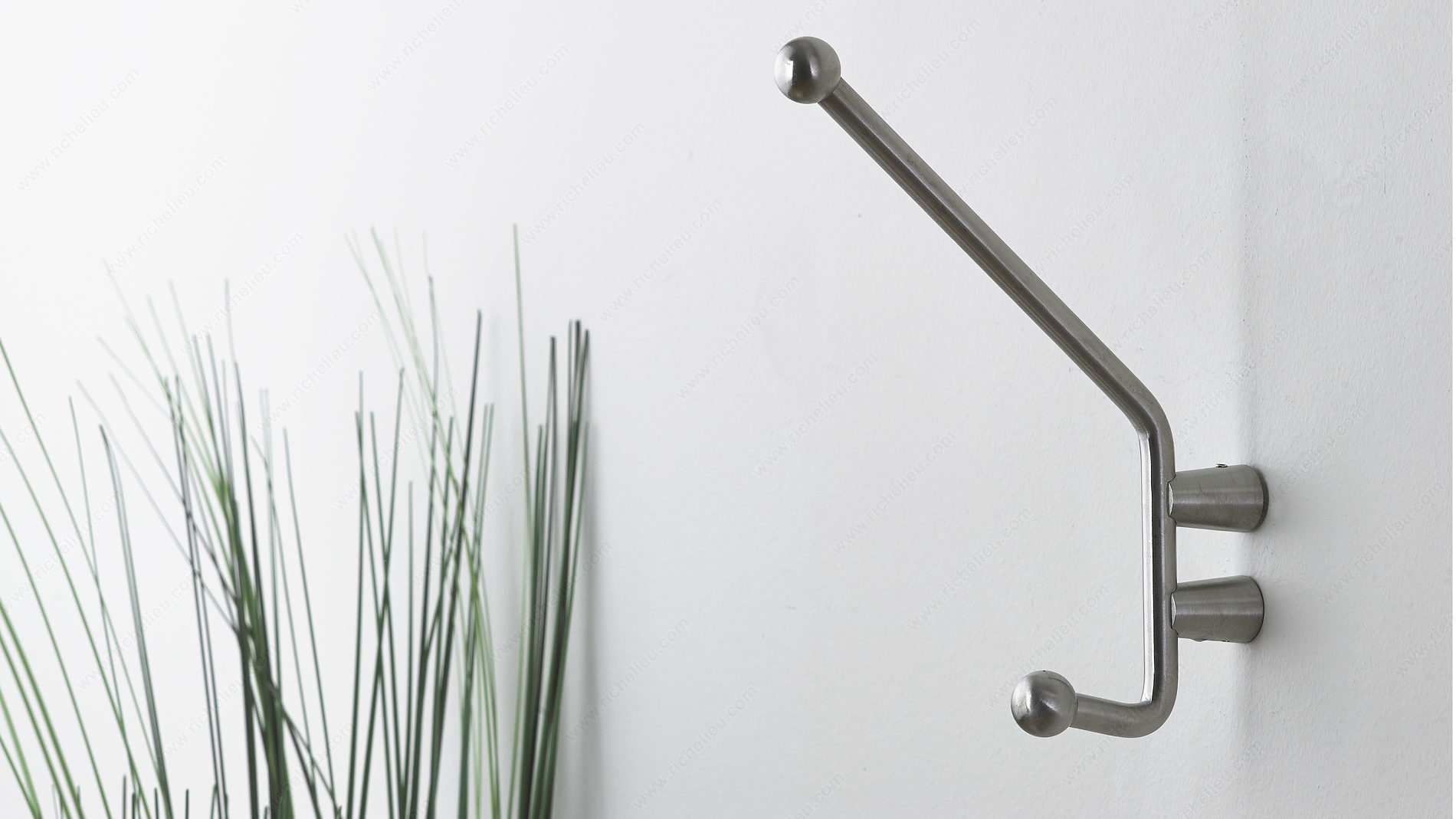 Richelieu 560002170 Modern Stainless Steel Hook - 56000 combines style and functionality, making it an ideal addition to any contemporary space. Crafted from high-quality 304 stainless steel, this double hook features a sleek gray and chrome finish that enhances its modern appeal. The clean lines and ball end design ensure that clothing and accessories hang securely, preventing slips and damage. With an overall height of 6 7/8 inches and a projection of 3 15/16 inches, this hook is designed to maximize space while offering a robust load capacity of 22 pounds. Whether used in entryways, bathrooms, or kitchens, it provides a reliable solution for organizing coats, bags, or towels. Installation is straightforward, as screws are included with the hook, allowing for quick and easy mounting on various surfaces. The versatile design complements a range of decor styles, from minimalist to industrial, making it a perfect choice for homeowners and building professionals alike. Richelieu is known for its commitment to quality, and this modern hook exemplifies that dedication. Elevate your space with the Richelieu 560002170 Modern Stainless Steel Hook, where durability meets sophisticated design.