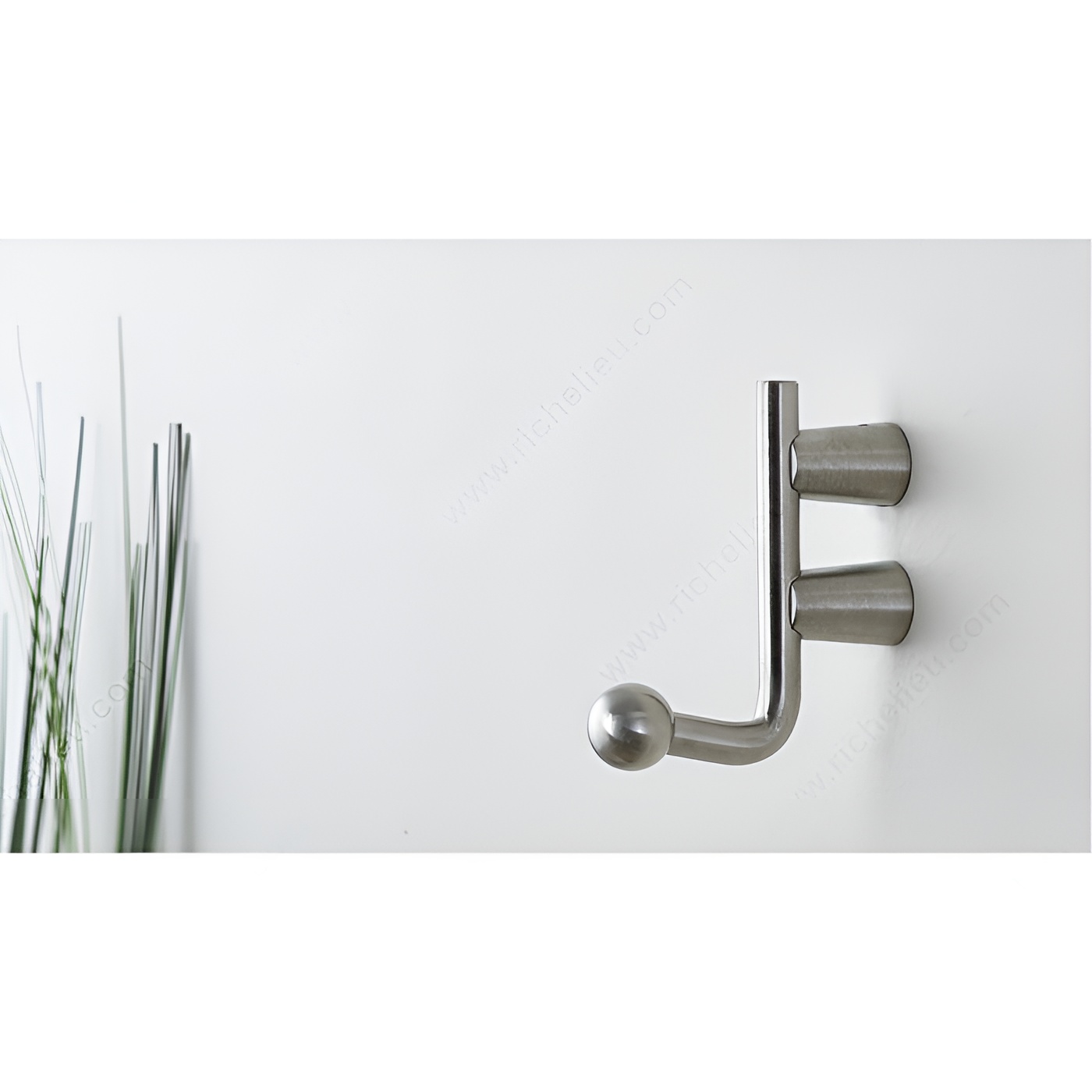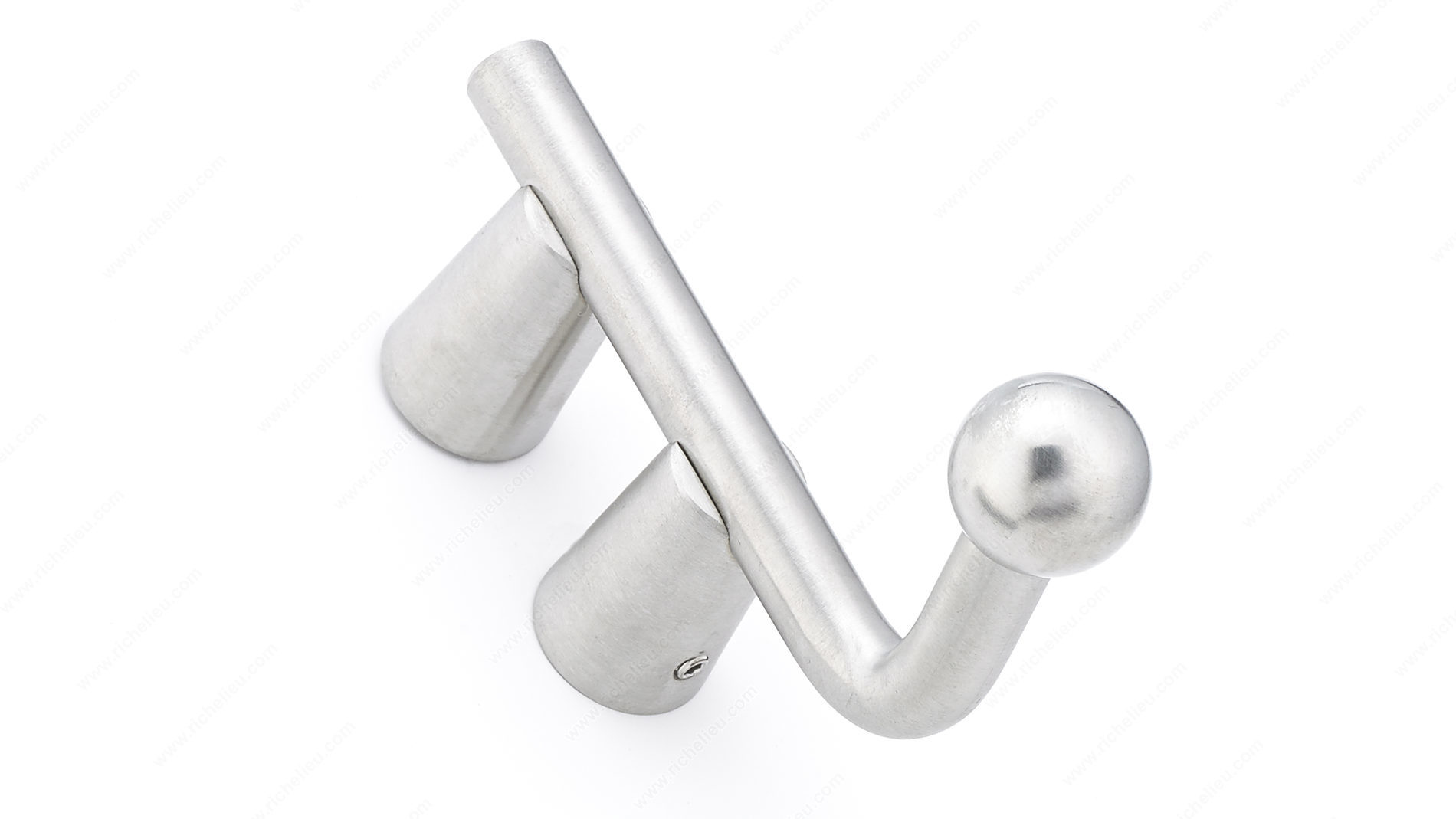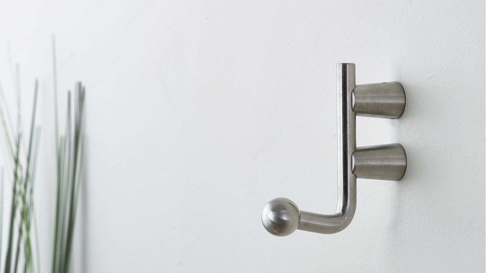 Richelieu 560003170 Modern Stainless Steel Hook is a stylish and original addition to any contemporary space, designed to seamlessly blend functionality with aesthetic appeal. Crafted from durable 304 stainless steel, this coat hook features a sleek gray and chrome finish that enhances its modern look. Its ball end ensures that clothes and other items hang securely, preventing slips and damage. With an overall height of 3 15/32 inches and a projection of 3 5/32 inches, this hook is compact yet offers a load capacity of up to 22 pounds, making it a reliable choice for various applications, from entryways to bathrooms. The simple hook model is easy to install, with screws included for your convenience. Its dimensions of 25/32 inches in width make it a perfect fit for tight spaces without compromising on strength or style. Whether you are outfitting a commercial area or upgrading your home, the Richelieu 560003170 hook promises both practicality and elegance. Its modern design complements a wide range of décor, making it an ideal choice for building professionals and discerning homeowners looking to enhance their environment with quality hardware.