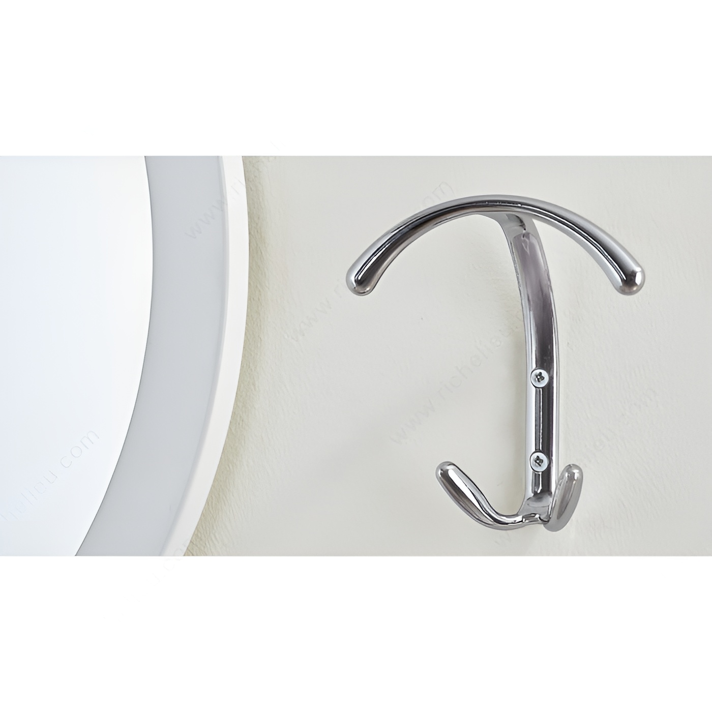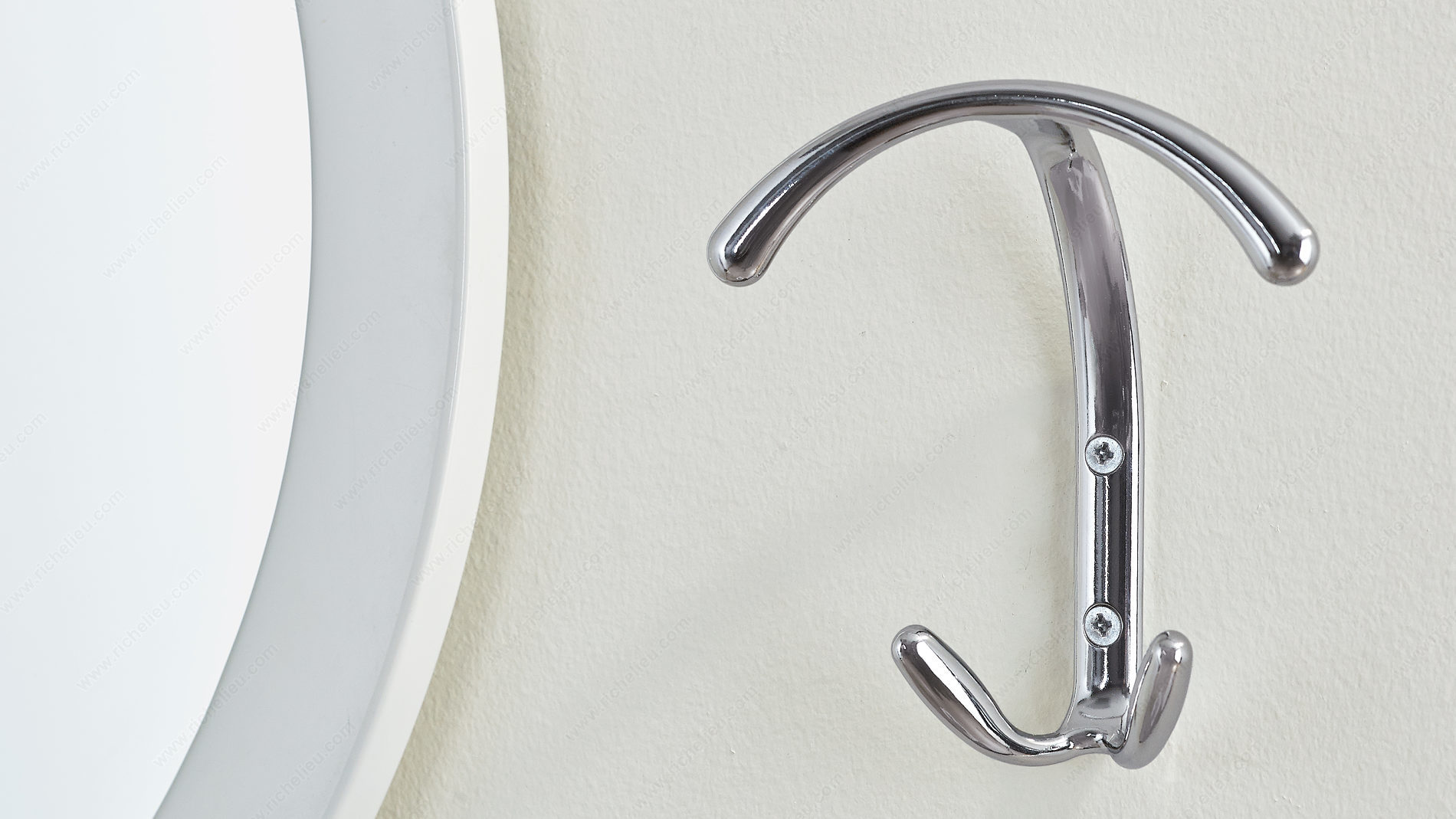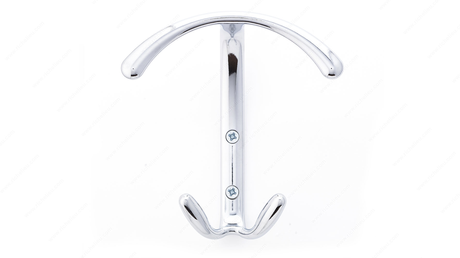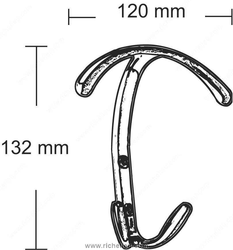 Richelieu 56118140 Modern Metal Hook - 56118 combines clean lines with a bold design, ensuring a strong presence in any space. Finished in chrome, this hook not only enhances the aesthetic appeal of your room but also stands out beautifully against various surfaces. With an overall height of 5 3/16 inches, a width of 4 23/32 inches, and a projection of 2 3/32 inches, this hook is designed to fit seamlessly into modern environments. Crafted from durable metal, it boasts a substantial load capacity of 22 pounds, making it ideal for hanging everything from coats to bags. The modern styling of the multiple hook model is perfectly suited for both residential and commercial applications, providing functionality without compromising on design. The chrome finish complements its gray color, adding a sleek touch to your decor. Each hook comes with screws included for easy installation, allowing you to set it up quickly and efficiently. Whether you are looking to organize your space or simply add a stylish accent, the Richelieu Modern Metal Hook is an excellent choice. Elevate your interior design while enjoying the practical benefits of this robust and stylish accessory.