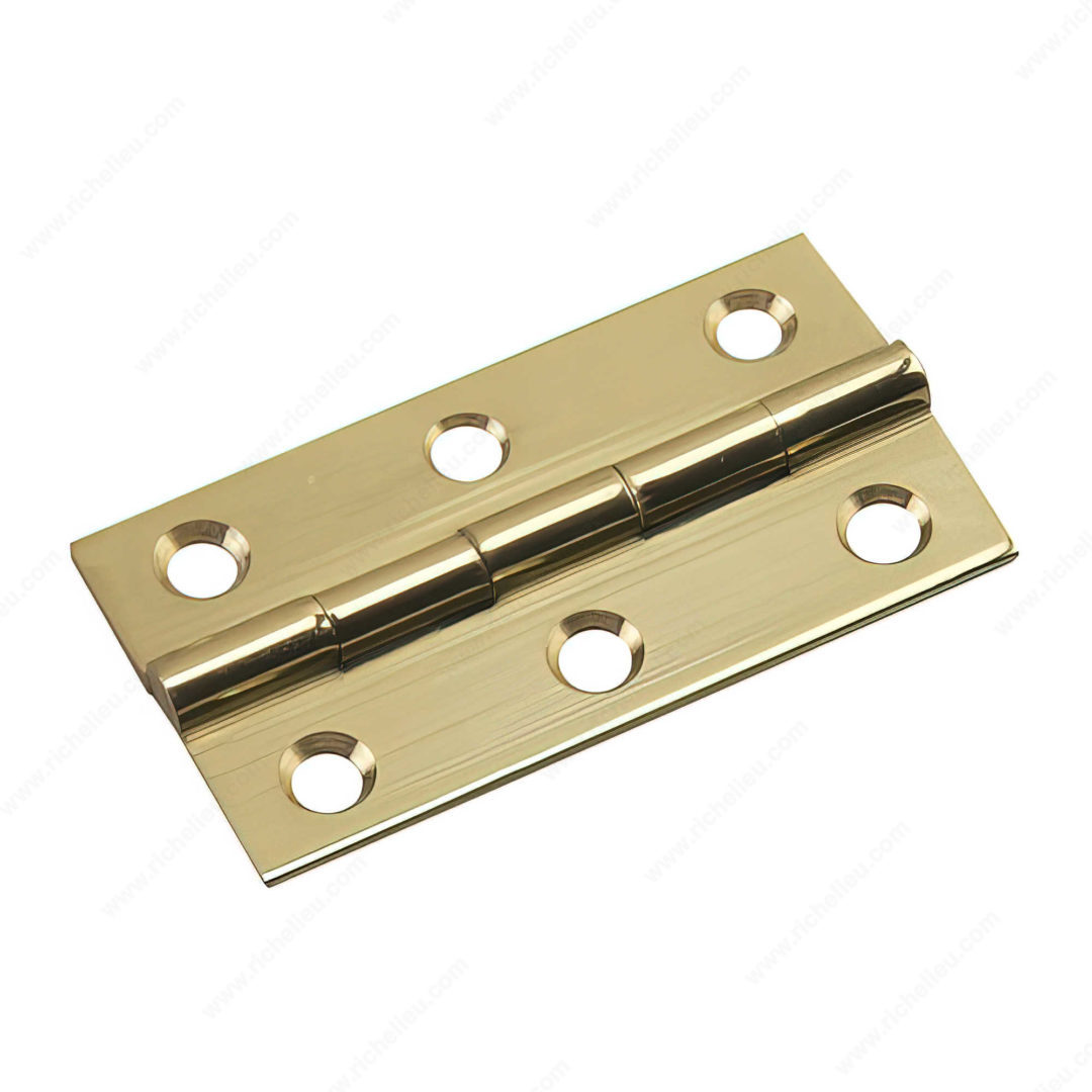 Richelieu 593SBR Narrow Butt Hinge offers an ideal solution for your small boxes, cabinets, and various construction projects. Crafted from solid brass, this hinge combines modest aesthetics with robust functionality, making it a perfect choice for those seeking both style and strength. Measuring 2 inches in height and 1 1/8 inches in width, it is designed to seamlessly fit into compact spaces while maintaining a safe working load of 5 pounds. The bright brass finish enhances its visual appeal, providing a sophisticated touch that complements any décor. This hinge is user-friendly and straightforward to install, ensuring that even those with minimal experience can achieve professional results. Each purchase includes the necessary screws, making it an all-inclusive option for your projects. With its durable construction and elegant design, the Richelieu 593SBR Narrow Butt Hinge is sure to meet the demands of both building professionals and knowledgeable homeowners alike. Whether you're working on a new cabinet or repairing an old box, this hinge is a reliable addition that guarantees quality and performance. Plus, it conveniently ships via UPS, ensuring you receive it quickly and efficiently. Elevate your craftsmanship with this essential hardware piece.