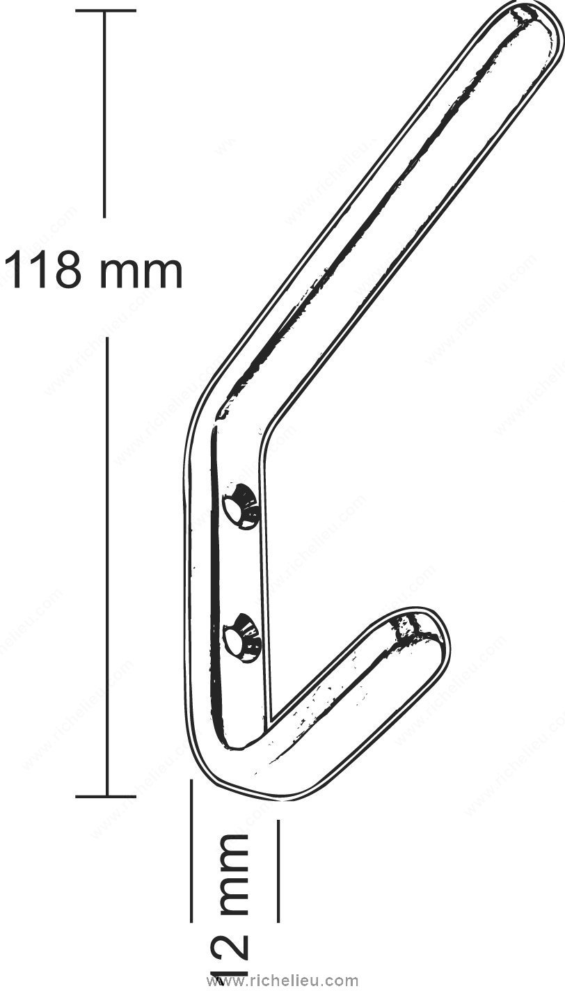 Richelieu 60434145 Modern Aluminium Hook offers a sleek and contemporary solution for your organizational needs. Designed with clean lines and curved ends, this double hook not only serves a functional purpose but also enhances the aesthetic of any space. Constructed from durable aluminum, it boasts a modern finish in gray and chrome, ensuring it complements a variety of interior styles. With an impressive load capacity of 22 pounds, this hook is ideal for hanging coats, bags, hats, and other items, making it a versatile addition to entryways, closets, or bathrooms. For optimal performance, it is recommended to mount the hook directly to wall studs, typically spaced at 16-inch intervals. If stud mounting is not feasible, appropriate drywall anchors should be used, as the included plastic anchors may not be suitable for all wall types. Measuring 4 21/32 inches in height and projecting 3 5/8 inches from the wall, this hook has a subtle yet functional profile. The width of 15/32 inches ensures it fits seamlessly into tight spaces. Each hook comes with screws for easy installation. Choose the Richelieu 60434145 Modern Aluminium Hook for a blend of style and strength in your home organization solutions.
