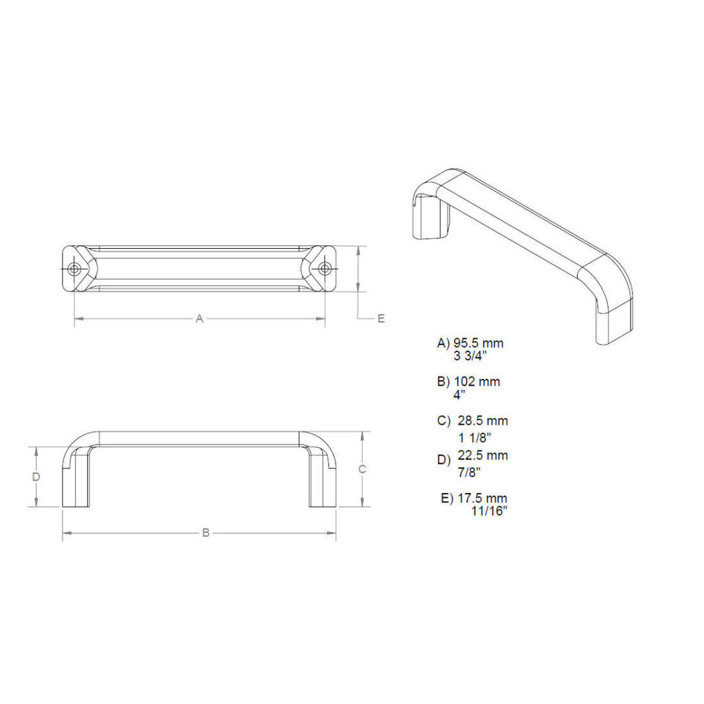 Richelieu 611030 Functional Plastic Pull - 6110 is a perfect blend of simplicity and practicality, making it an ideal choice for your drawer fronts. Crafted from durable plastic, this pull features a clean white finish that seamlessly integrates into a variety of design aesthetics. With an overall length of 4 1/32 inches and a comfortable projection of 1 5/32 inches, it ensures effortless grasp and ease of use. Designed with a center-to-center measurement of 3 25/32 inches, the pull is well-suited for standard drawer configurations. Its compact width of 23/32 inches provides a sleek profile that enhances both functionality and style. This utility-style pull is versatile enough for various applications, including children’s rooms and outdoor settings, making it a practical choice for any environment. The Richelieu 611030 is sold per unit and requires #6 screws for installation, which are not included. Whether you're renovating a kitchen or outfitting a new space, this functional plastic pull delivers reliable performance while elevating the overall look of your cabinetry. Choose this stylish and practical hardware to bring a fresh touch to your home or project.
